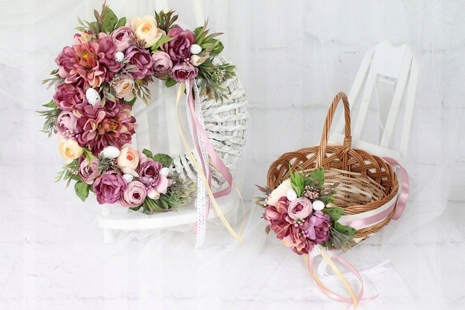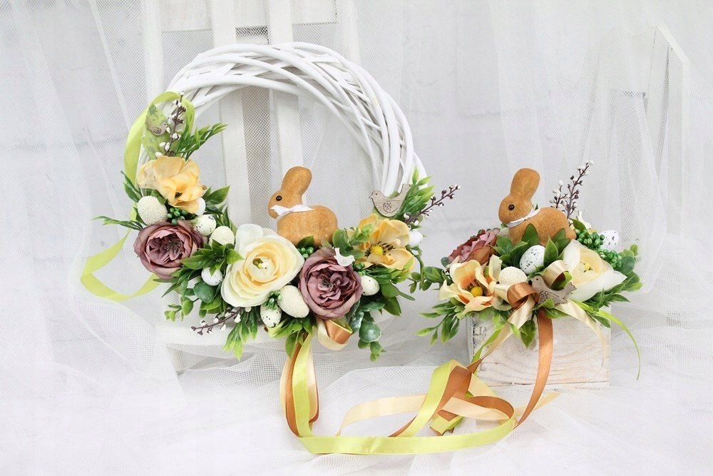 В наших предложениях у нас также есть композиции в аналогичном стиле, украшения для пасхальной корзины или корзины с готовым украшением