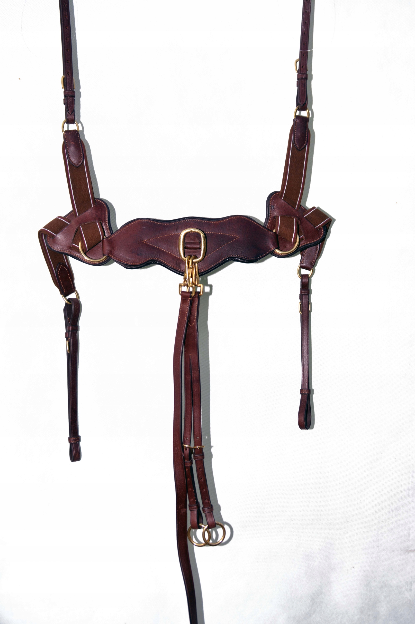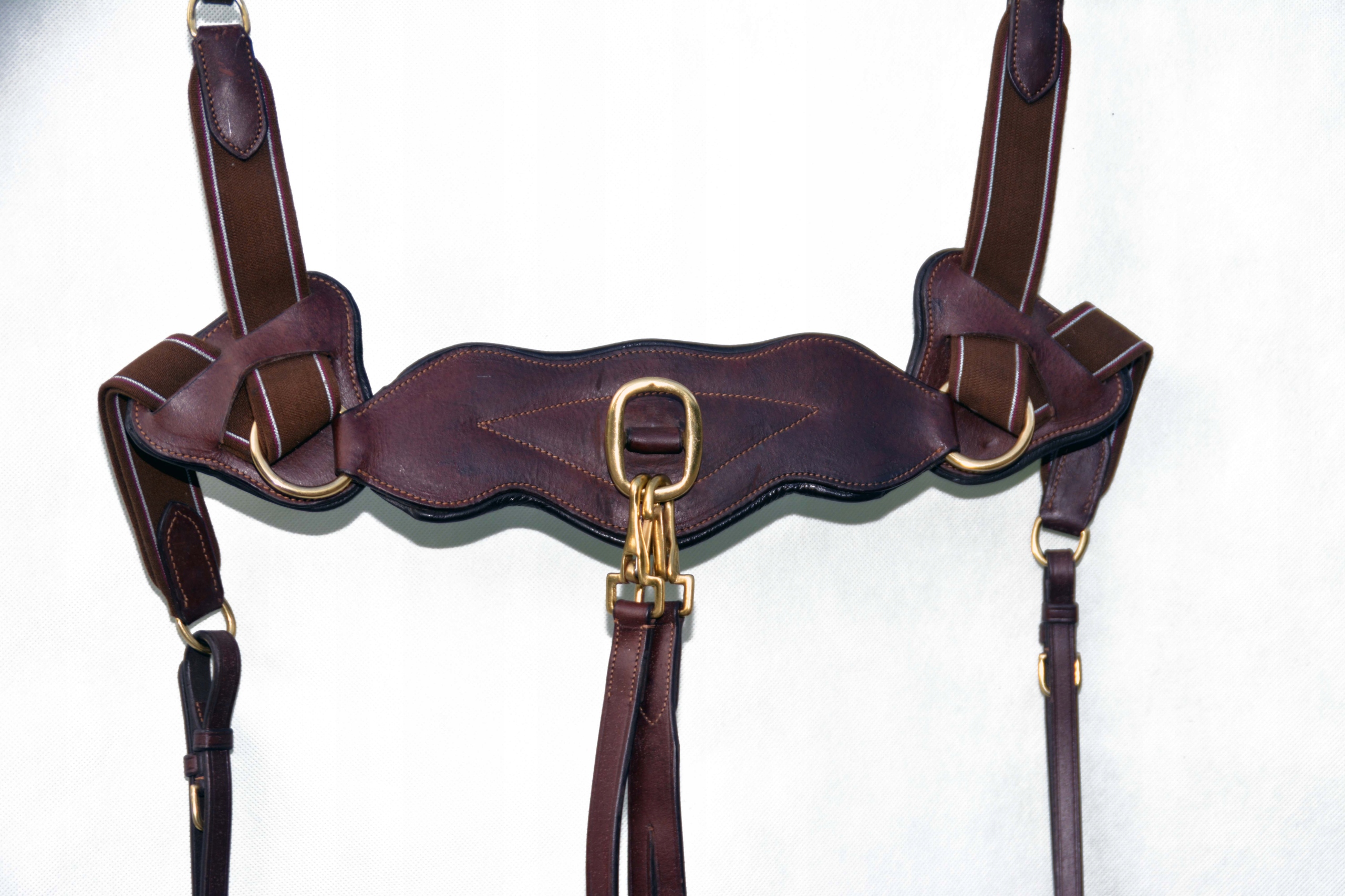 Нагрудник с мартингалом модели пассье размера. полный. Кираса изготовлена на шорной фабрике во Франции. Изготовлен из коровьей кожи высочайшего качества, очень мягкой и приятной на ощупь, задняя часть покрыта мягкой кожей для предотвращения потертостей. Нагрудник застегивается и регулируется устойчивыми пряжками из очень хорошей нержавеющей стали.