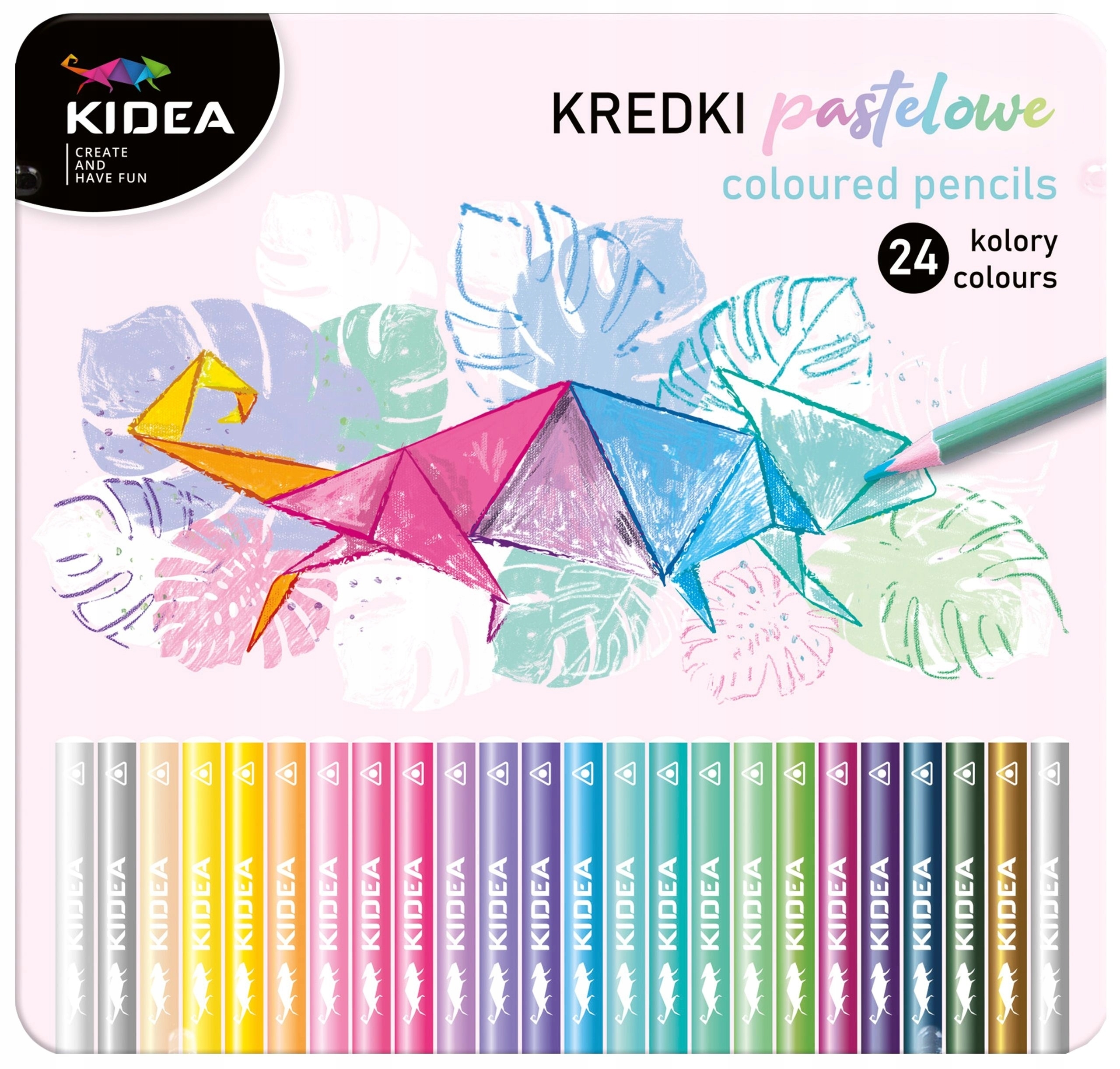 пастельные треугольные карандаши в металлической коробке 24 цвета Kidea