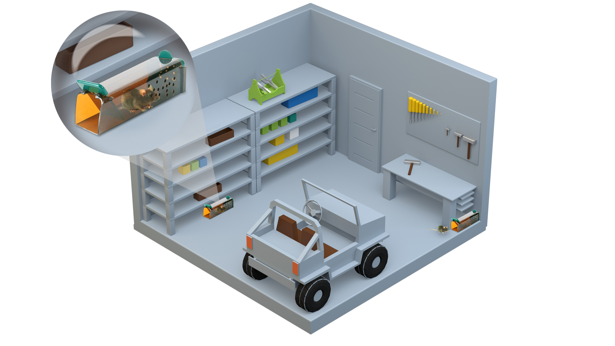 Благодаря компактным размерам мышеловку можно использовать в таких местах, как кладовые, кухни, гаражи, сараи, подвалы и где-либо еще, где следует избегать использования химических средств борьбы с грызунами.