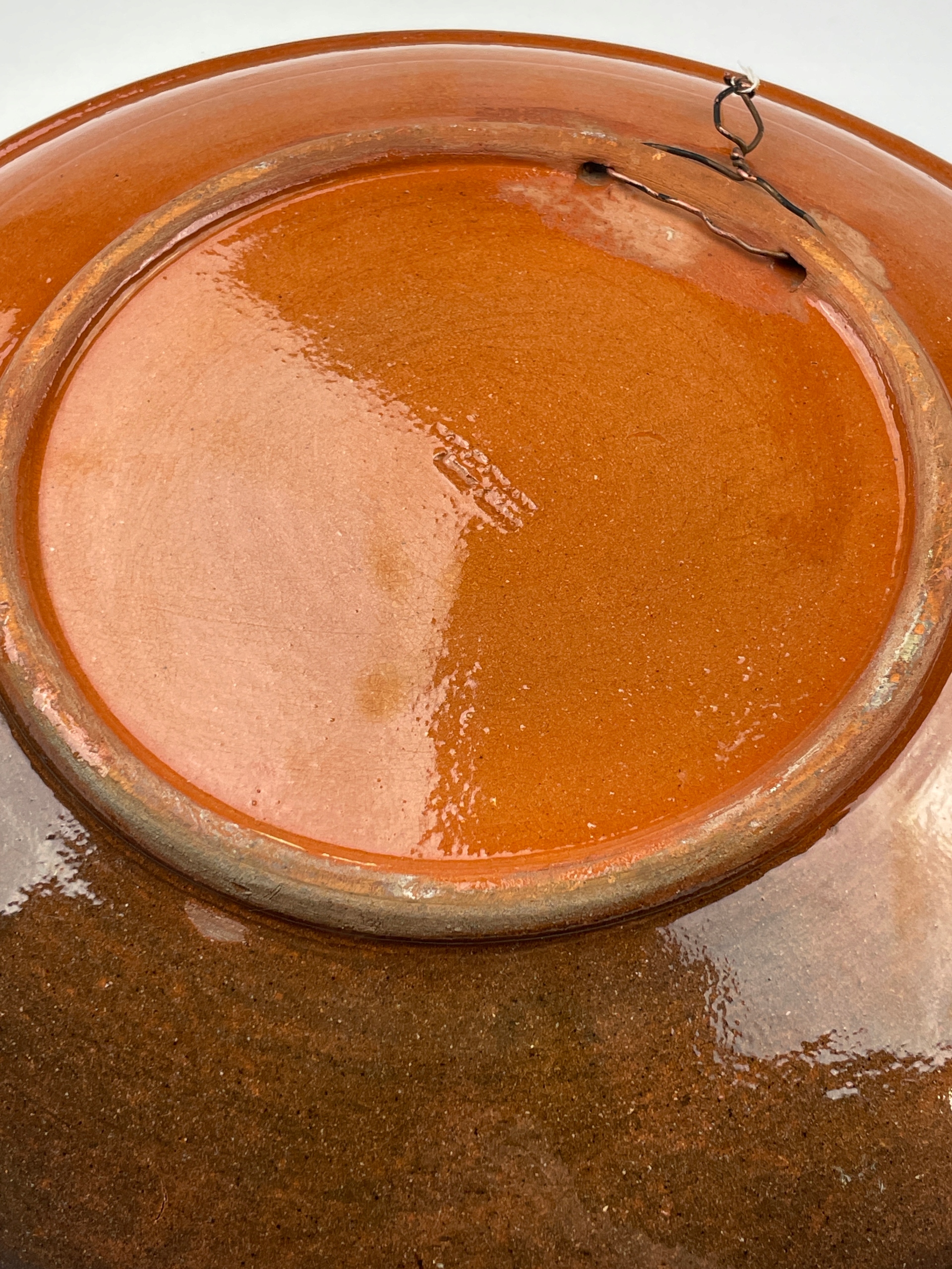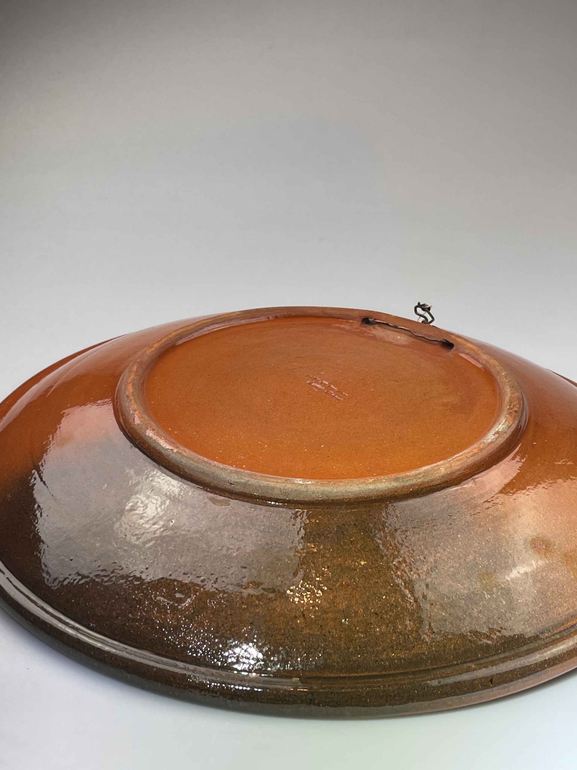 Patera kamionka gliniana dekoracyjna sygnowana Łysa Góra 32 cm PRL
