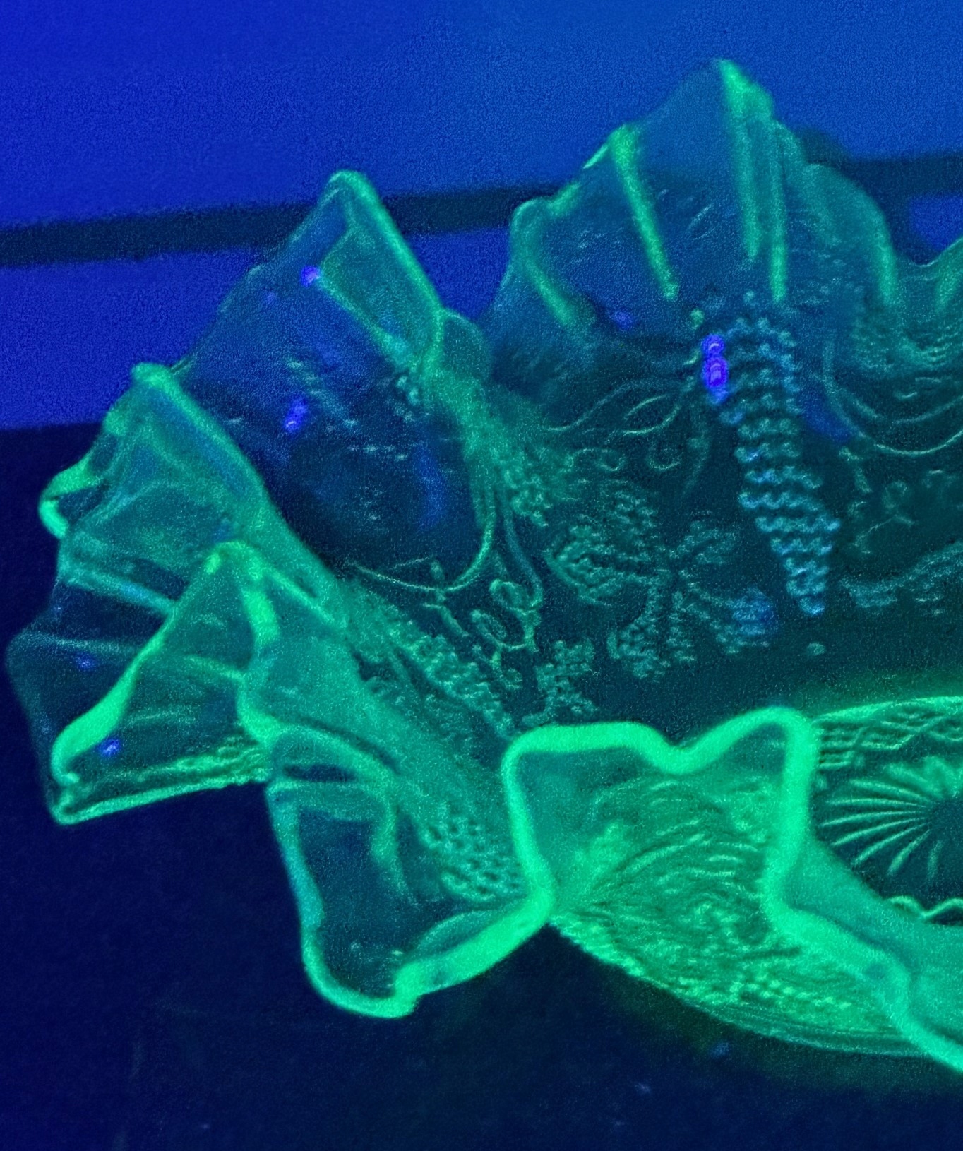 Патерка с общежитым урановым стеклом Радеберг? Виноградный декор в возрасте 18 см.
