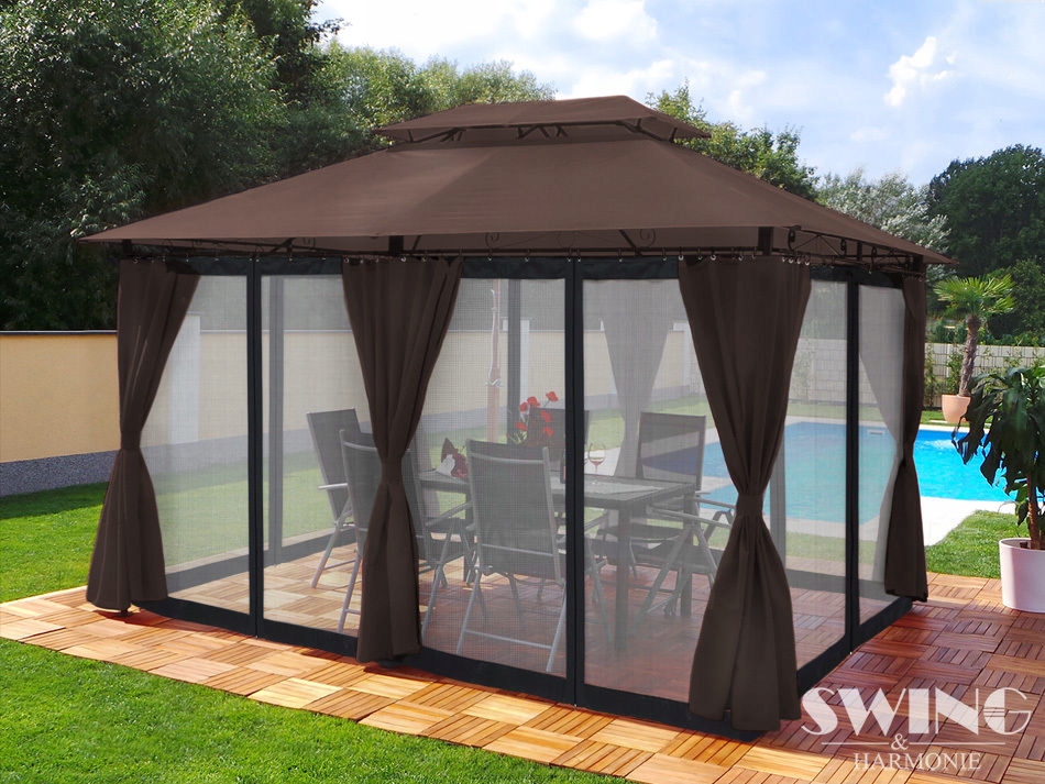 Наслаждайтесь прекрасными солнечными днями и теплыми летними вечерами в роскошном павильоне. Крыша спроектирована таким образом, чтобы там не скапливалось тепло и вы не промокли в дождливую погоду.