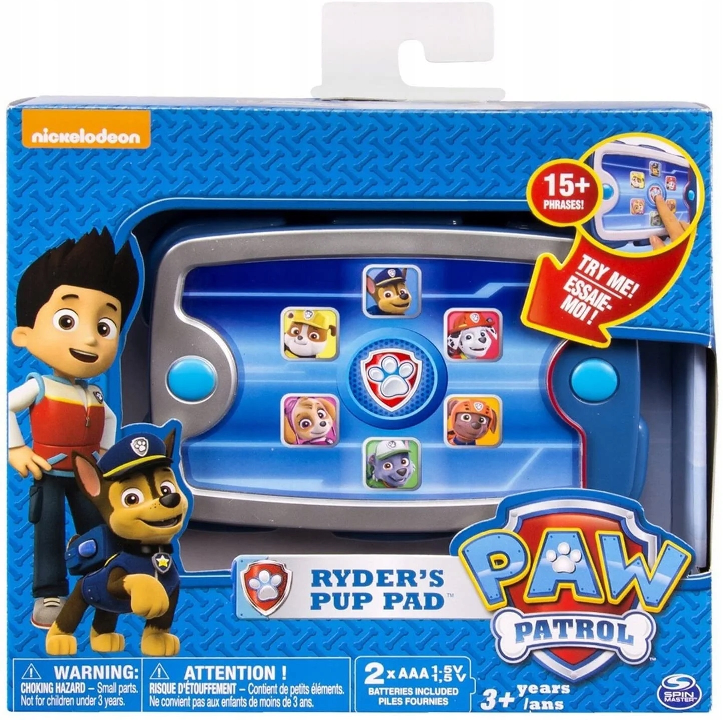 Помогите персонажам из сериала «Щенячий патруль» спасти положение с помощью интерактивного планшета Райдера. Как и в сериале, вы можете использовать планшет Райдера, чтобы вызвать Щенячий патруль, когда возникнет проблема. После нажатия на иконку собаки указанный герой будет произносить различные строки, выражающие готовность к действию (на английском языке). Нажав логотип Dog Patol, дети услышат 4 строки, произнесенные Райдером, и звук общения. В планшете есть звуковые эффекты.