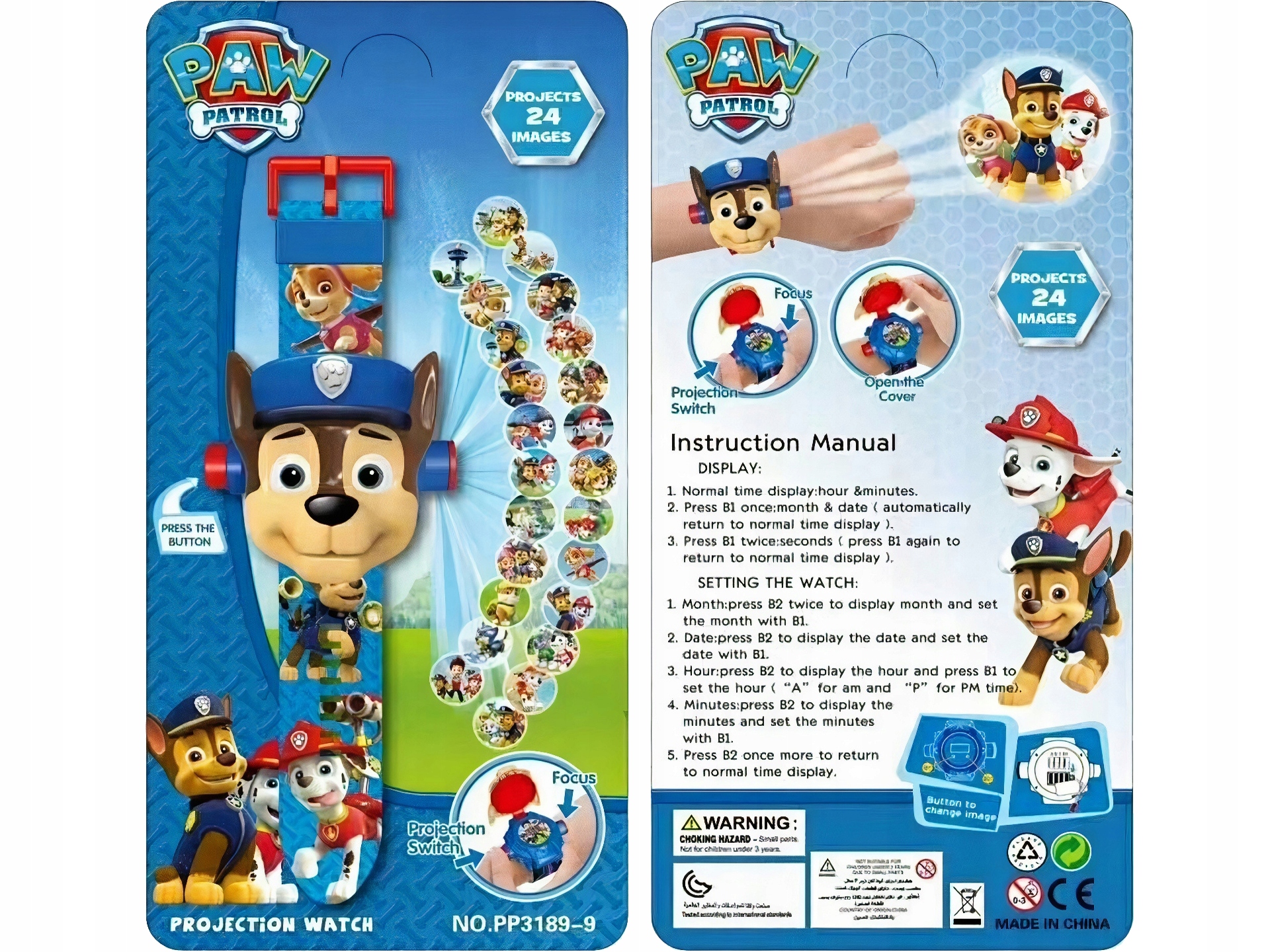 Часы оснащены специальным проектором для отображения 24 картинок с персонажами мультфильма «Щенячий патруль».