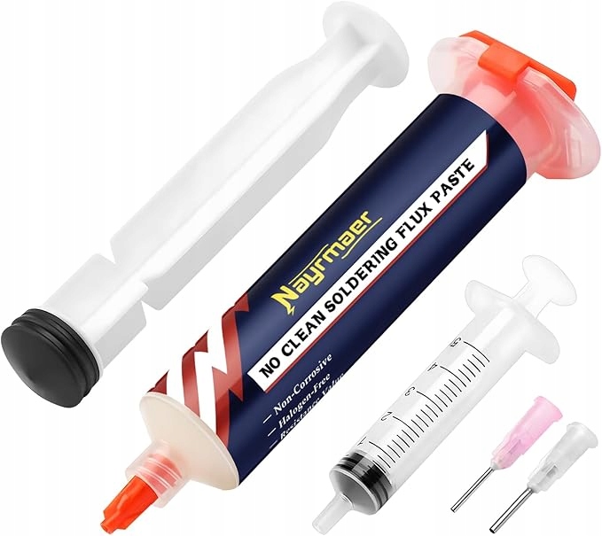 Инструкция по применению: перед использованием введите содержимое шприца объемом 30 мл в шприц объемом 5 мл или используйте шприц объемом 5 мл. Перед пайкой очистите электронные компоненты, выдавите необходимое количество паяльного средства Nayrmaer No-Clean и равномерно распределите тепло по паяному соединению с помощью термофена. Температура тепловой пушки 200-300 градусов Цельсия. Добавление флюса облегчает лужение. Структура паяного соединения очень цельная, прочная и блестящая.