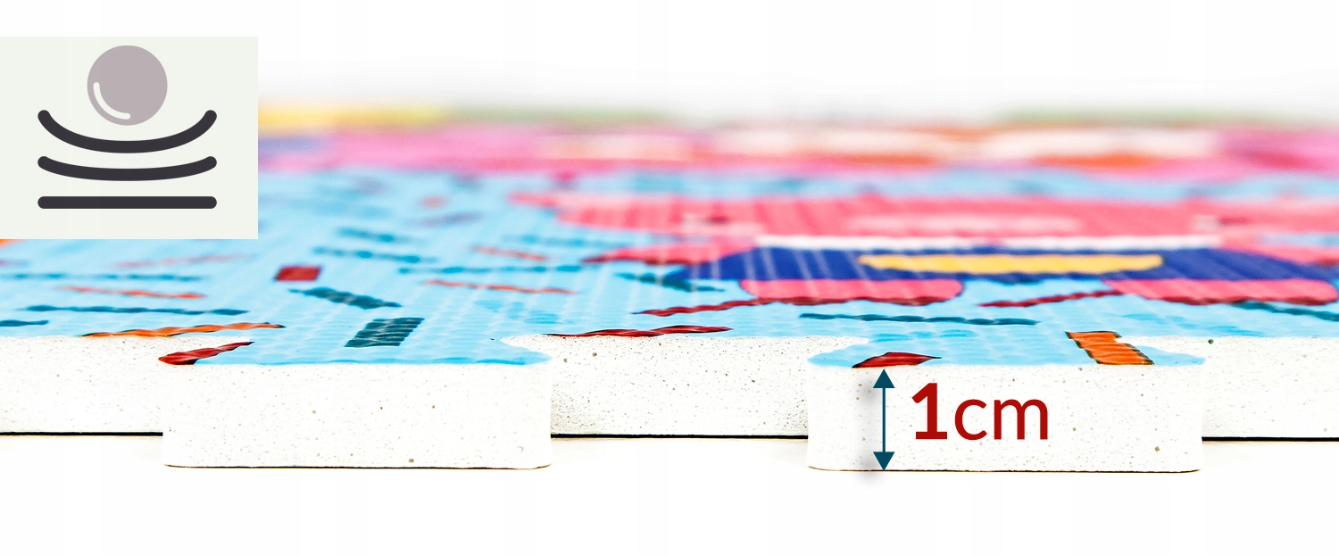 Благодаря толстой пене EVA (1 см) вы можете быть уверены, что коврик эффективно выдержит любое падение.