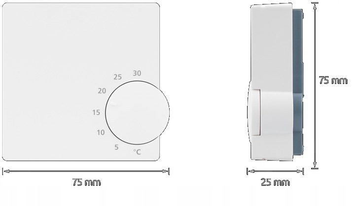 Накладной комнатный регулятор, предназначенный для управления теплым полом, характеризующийся высокой тепловой инерцией.
