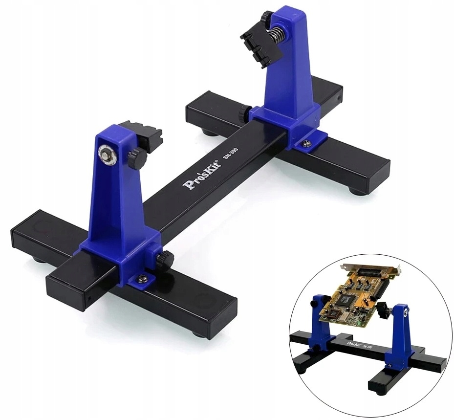 SN-390-это монтажная ручка, предназначенная для размещения печатной пластины во время пайки. Максимальный размер печатной печатной пластины в ручке составляет 200 мм x 140 мм. Таким образом, мы можем положить довольно большую плитку. Расположенная печатная пластина с элементами может быть свободно вращаться вокруг оси на 360 градусов. Ручка SN390 Pro'skit имеет 4 канавки на различных толщинах ламината. Предлагаемая ручка является практическим решением для любителей, DIY Electronics, а также пользователей, занимающихся профессиональными электронными устройствами. Монтажная ручка для печатной печатной платы. Модель SN-309 поставляется в картонном пакете с привлекательной красочной графикой. Так что, если вы не имеете знакомства с подарком для электроники, это идеальная и практическая позиция, которую получатель ценит