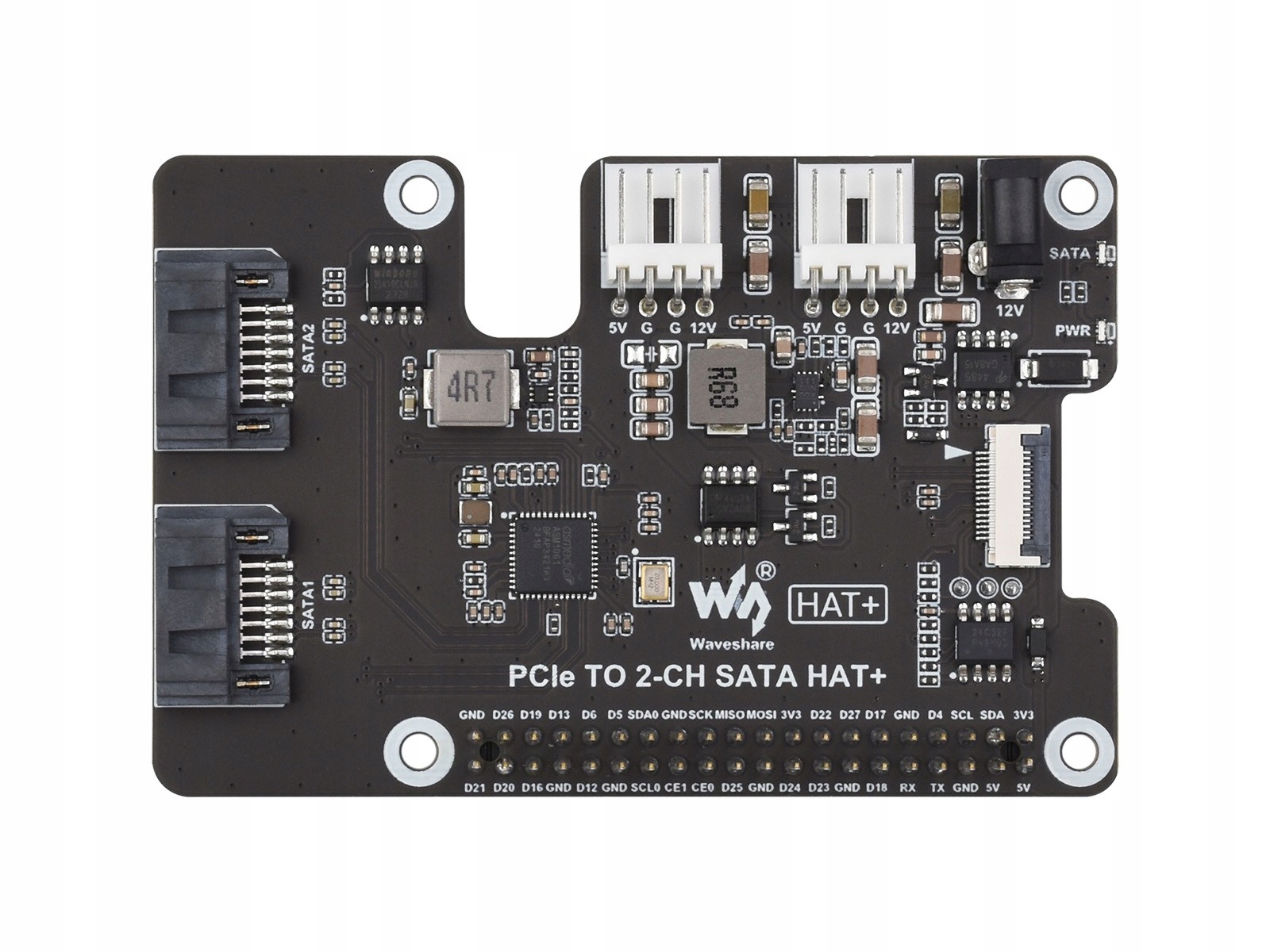 PCIe TO 2-CH SATA HAT+ — адаптер PCIe SATA для Raspberry Pi 5