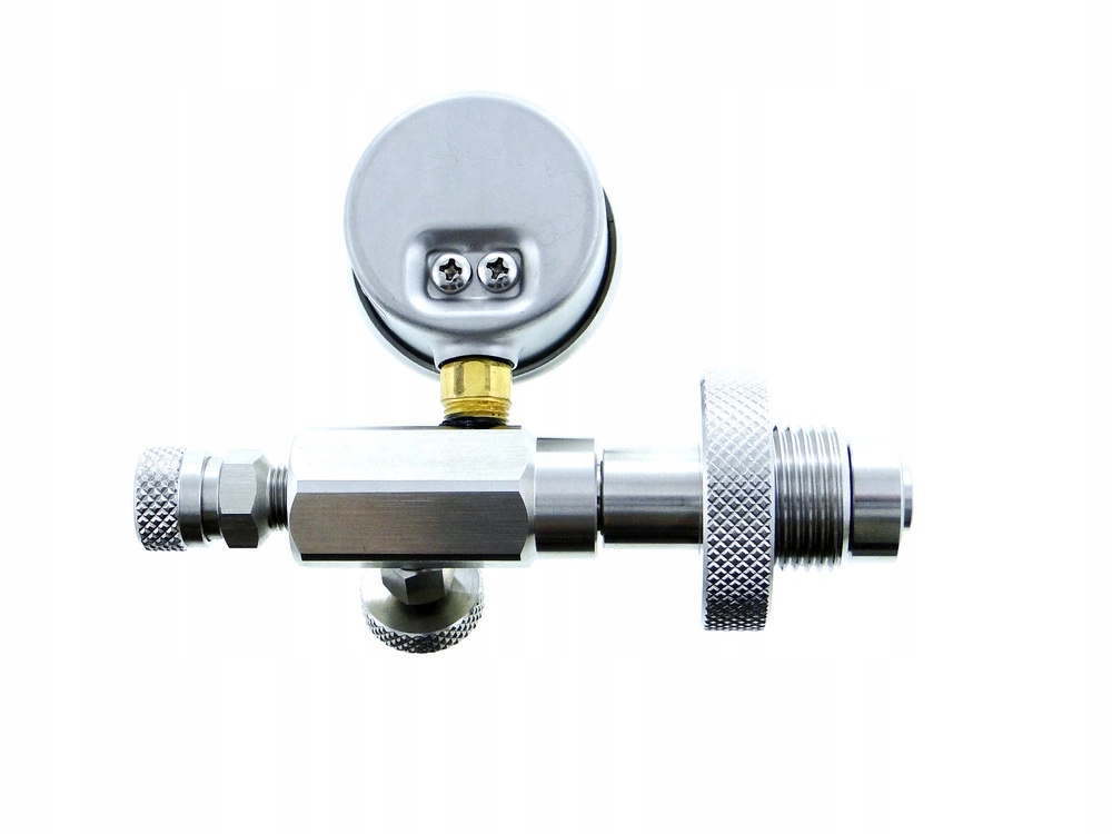 Зарядный комплект, адаптированный к баллону на 300 бар, имеет автоматический редуктор в виде отвинчивающегося винта.