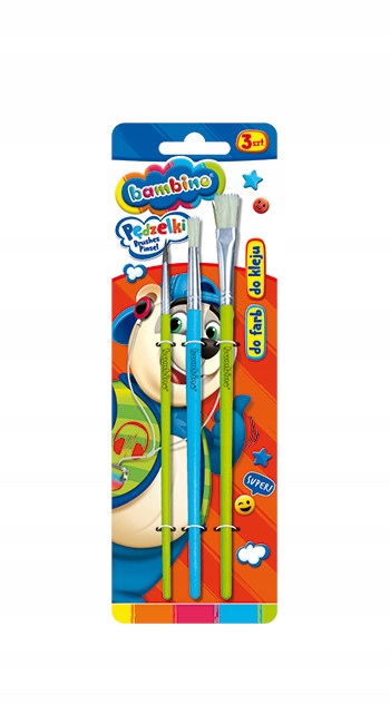 PĘDZELKI DO FARB MALOWANIA FARBAMI SZKOLNE BAMBINO ZESTAW PĘDZELKÓW 3szt