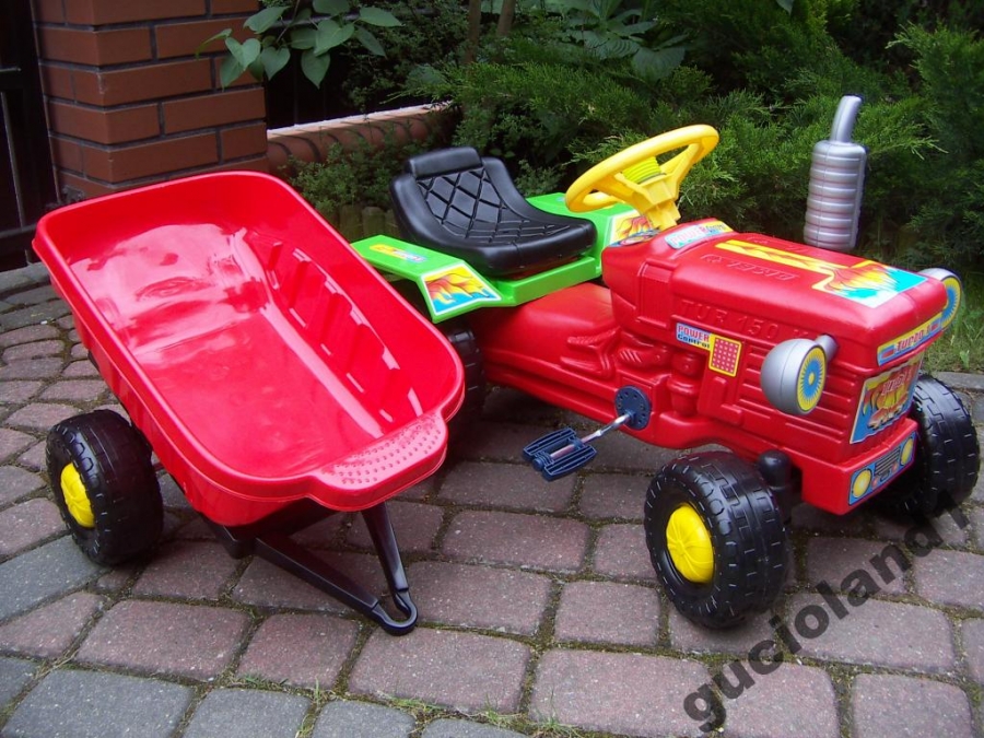 ТРАКТОР ИМЕЕТ ПЕДАЛЬНЫЙ ПРИВОД (С ЦЕПНЫМ МЕХАНИЗМОМ) И ПОВОРОТНЫЙ РУЛЬ, С ПОМОЩЬЮ РЕБЕНОК УПРАВЛЯЕТ ВСЕМ КОМПЛЕКТОМ!!!!