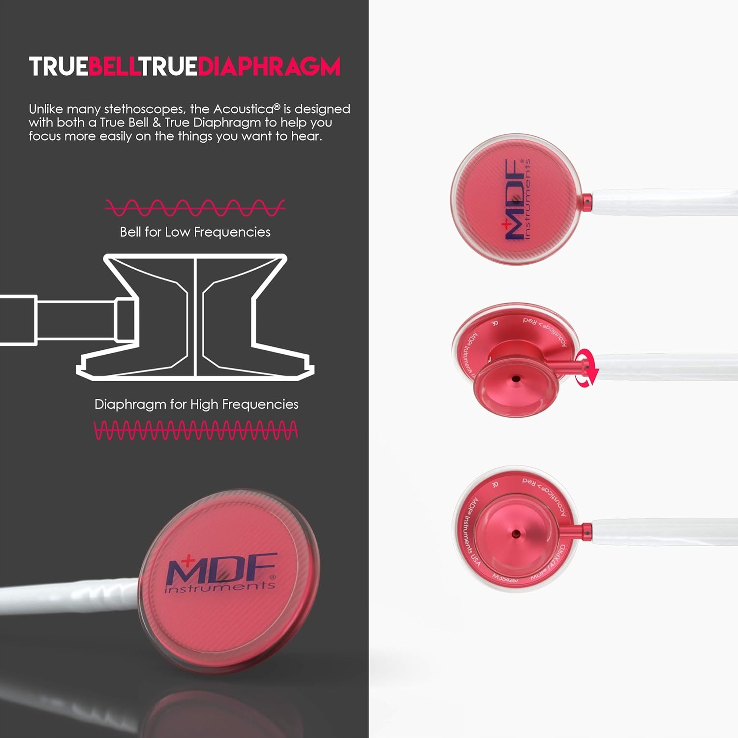 MDF® Acoustica® Deluxe Stethoscope - отличный выбор для врачей, медсестер, фельдшеров и других специалистов, которые ценят надежность, точность и комфорт . Элегантный дизайн в красном и белом, безусловно, подчеркнет ваш профессионализм.