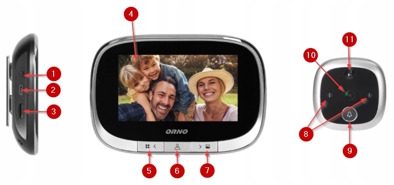 ЭЛЕКТРОННЫЙ ДВЕРНОЙ ПРОСМОТР Orno OR-WIZ-1108 позволяет видеть человека, стоящего прямо перед дверью, на экране цветного ЖК-дисплея диагональю 4,3 дюйма. Имеет широкоугольная камера, которая очень незаметна и приспособлена для установки вместо стандартных оптических видоискателей (так называемых глазков) с диаметром отверстия 13-28 мм.