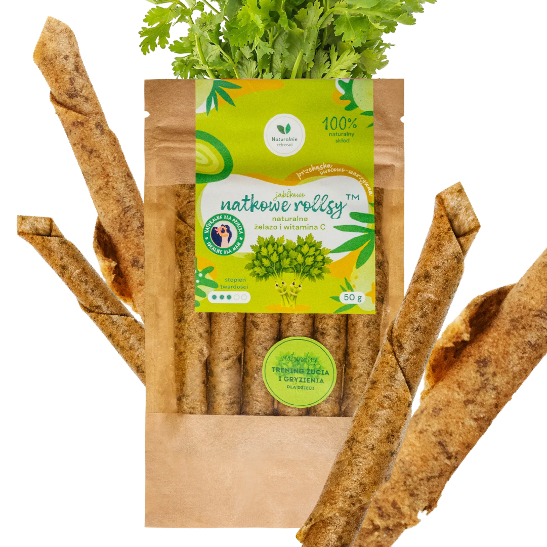 Роллы «Натка™» — это вкусный способ обеспечить витамином С, железом и фолатами, которые поддерживают жизненный тонус и правильное функционирование организма. Это зеленая сила петрушки во вкусной и удобной форме, идеально подходящей как для детей, так и для взрослых.