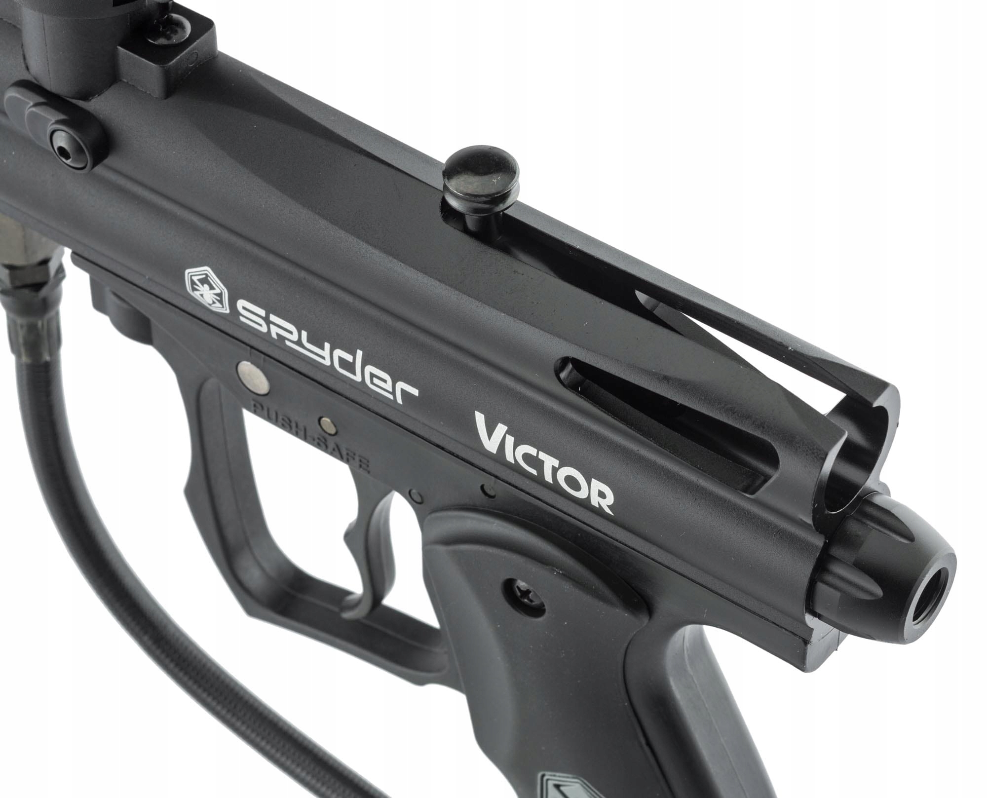 Spyder Victor — один из самых дешевых полуавтоматических маркеров, предназначенный для начинающих игроков. Он определенно выделяется среди моделей других марок своим компактным дизайном и более длинным, чем у других моделей, 10-дюймовым стволом с резьбой Spyder. Его внешний вид очень похож на маркеры спидбола. В текущей версии вес маркера уменьшен примерно до 900 г. Имеет центральную вертикальную подачу, двойной спусковой крючок (удобная стрельба), рукоятку эргономичной формы с нескользящими резиновыми накладками. Вытягиваемый вверх винт Делерина позволяет сразу снять затвор, удалить срезанную шариковую часть и очистить шомполом весь ствол, не выкручивая его. Очень быстрая и полезная вещь