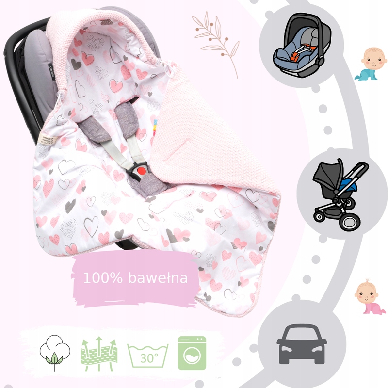 Чехлы на автокресла Микос Одеяло, пеленка, пеленка, спальный мешок с капюшоном для автокресла, коляска, переноска, хлопок 1039 РОЗОВЫЙ