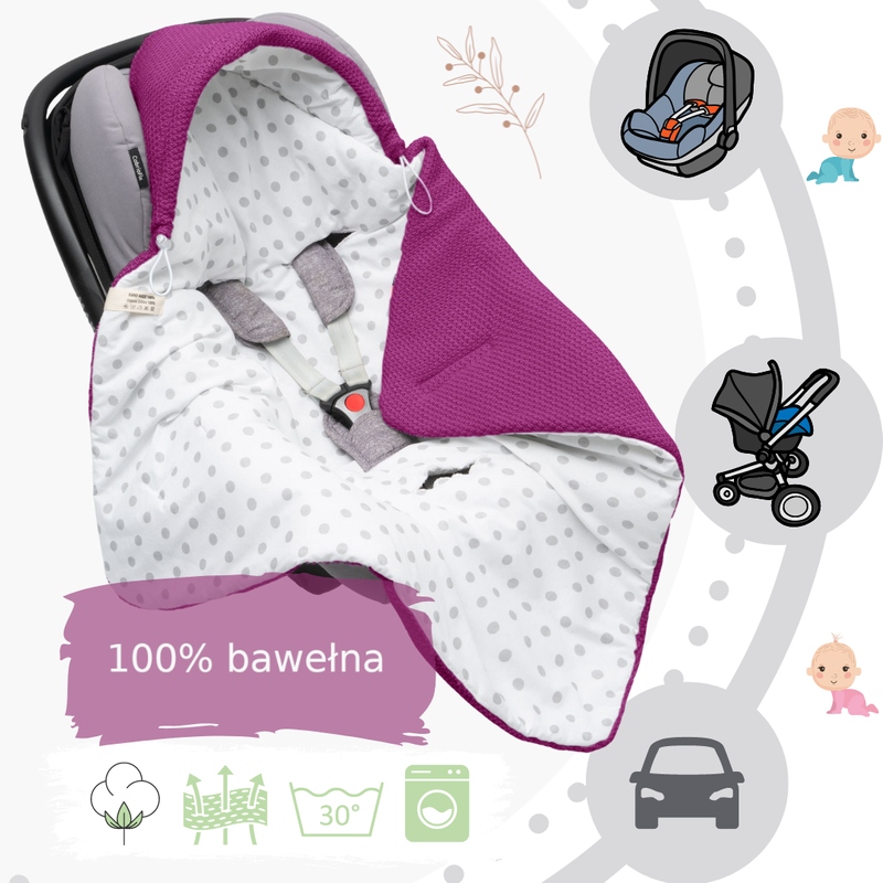 Mikos Одеяло на автокресло, детскую кроватку, спальный мешок, накидку с капюшоном на автокресло, коляску, переноску, хлопок 1039 ПУРПУРНЫЙ