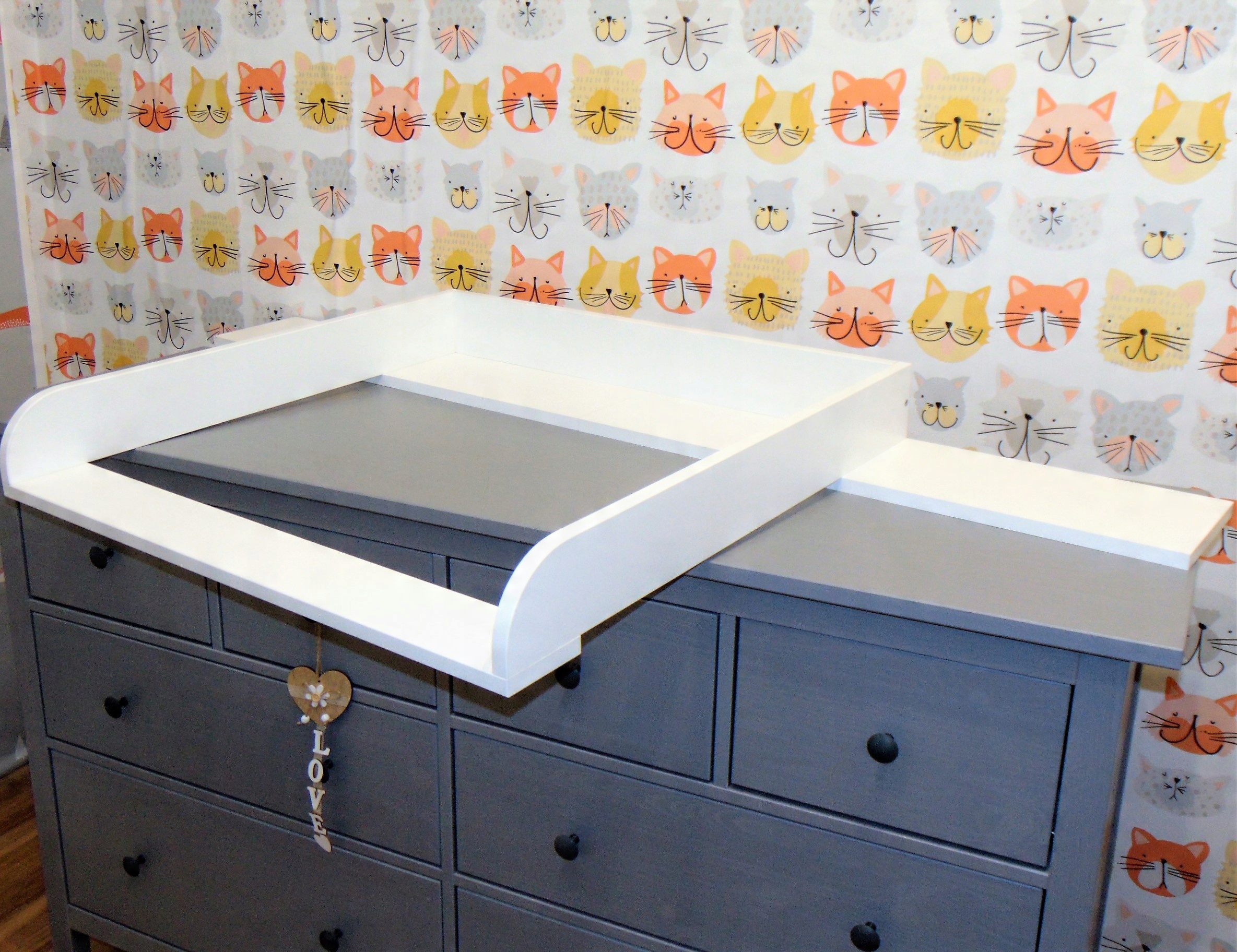 Предложение распространяется на пеленальный столик - накладку на комод 8 ящиков Hemnes от Ikea (160х50) с обложкой, остальные элементы, видимые на фотографиях, в комплект не входят.
