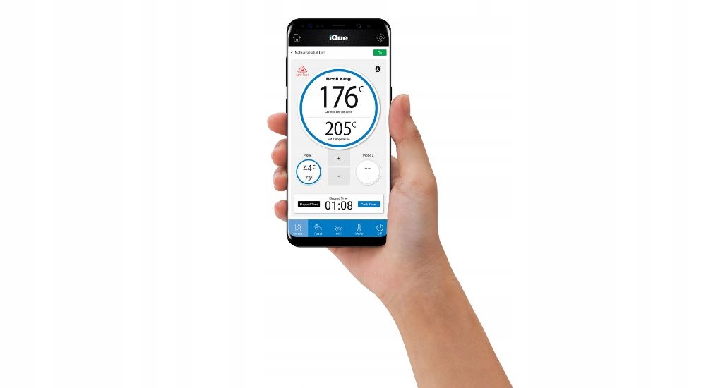 Все функции гриля можно настроить в приложении, доступном на вашем телефоне, а благодаря возможности подключения через Wi-Fi вы можете управлять и менять температуру внутри гриля из любой точки мира.