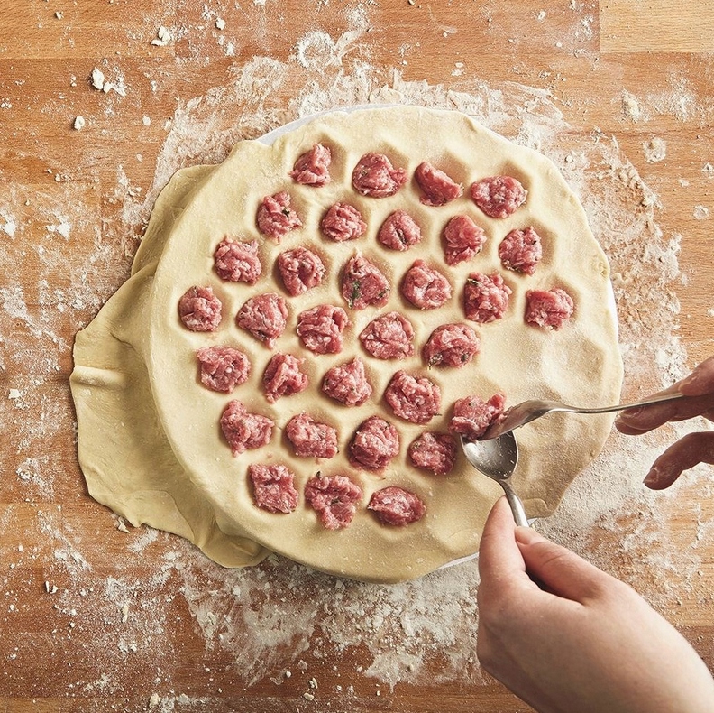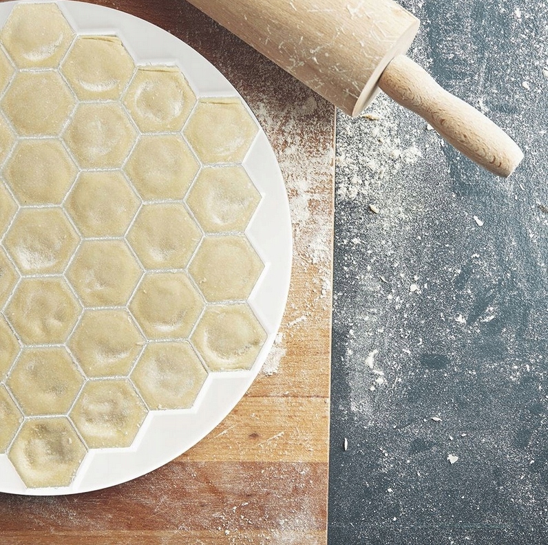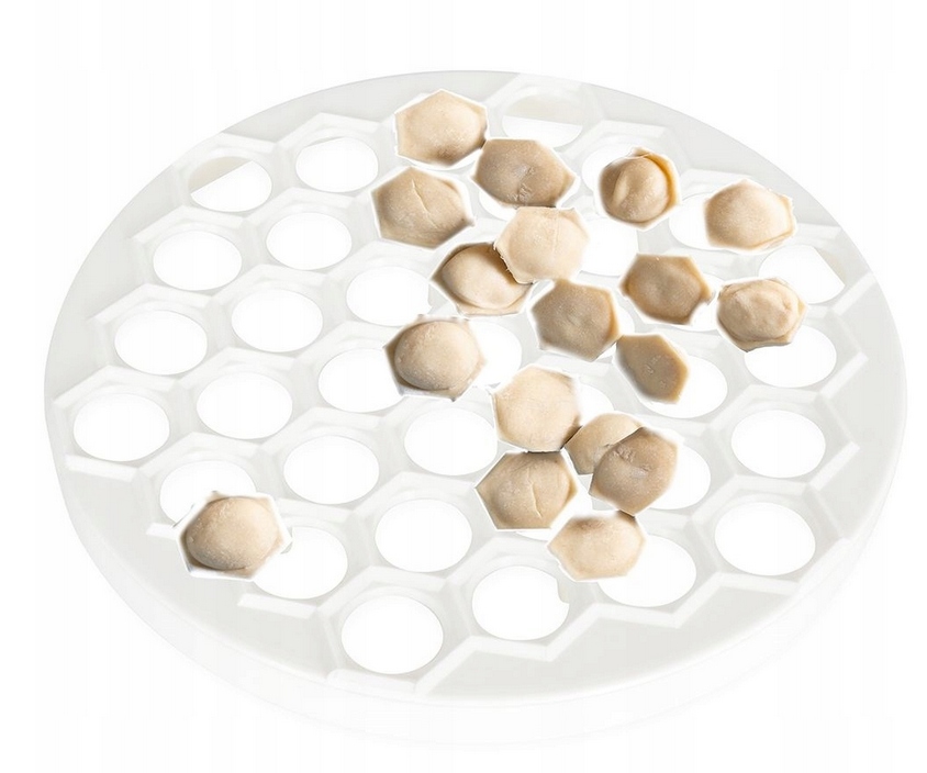 - Универсальный - работает для приготовления ушей, мини-пельменов, равиоли, наполненных различными начинками. Форма также может быть использована для печенья и других тортов, которые принимают круглую форму.