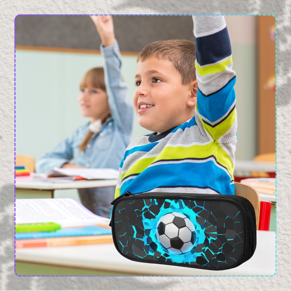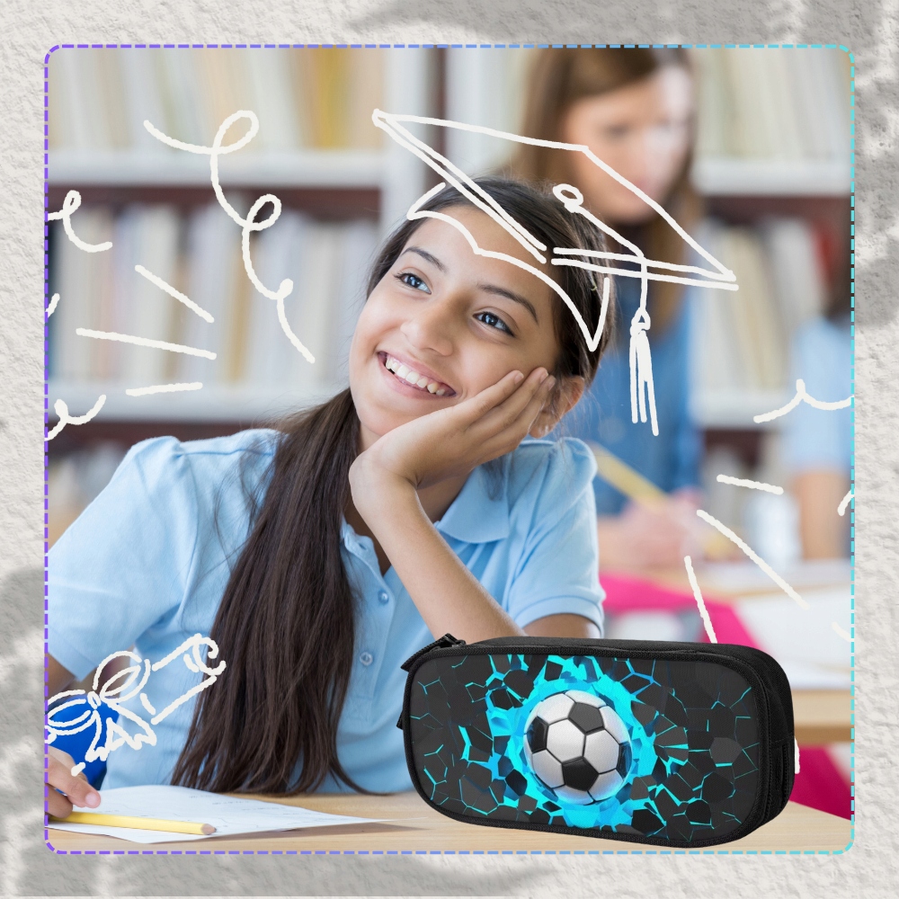 ✅ Пенал компактных размеров 21 х 5 х 10,5 см очень вместителен и обеспечивает эргономичное использование пространства. Вы можете легко хранить в нем все самые важные школьные и офисные принадлежности, зная, что они останутся на своем месте. Черный цвет с модным футбольным узором придает ему неповторимый стиль, который наверняка понравится любителям спорта и людям, предпочитающим модные, но неброские аксессуары.