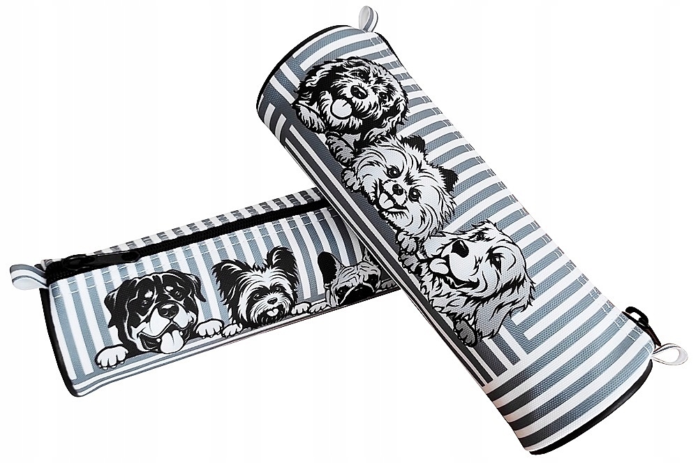 - Пенал с собачками выполнен в классическом, популярном и вневременном цилиндрическом крое;