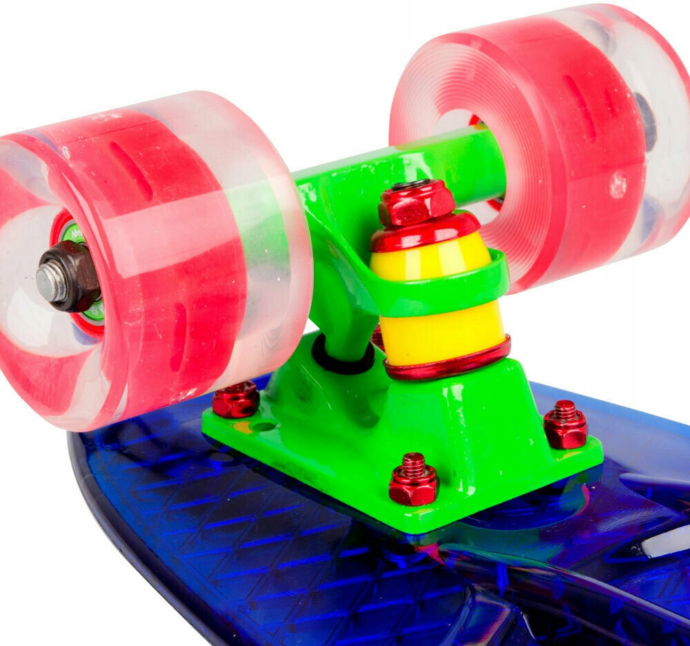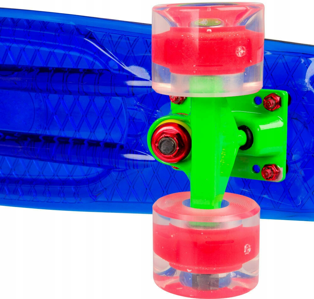 This kicktail Cruiser Board (более короткая доска с поднятой задней частью) идеально подходит для путешествий по городу, работе или в школе. Благодаря прозрачному исполнению, светящимися колесам, смешным дизайне и цветам Пенни -плата 400 вы будете беспокоить своих друзей.