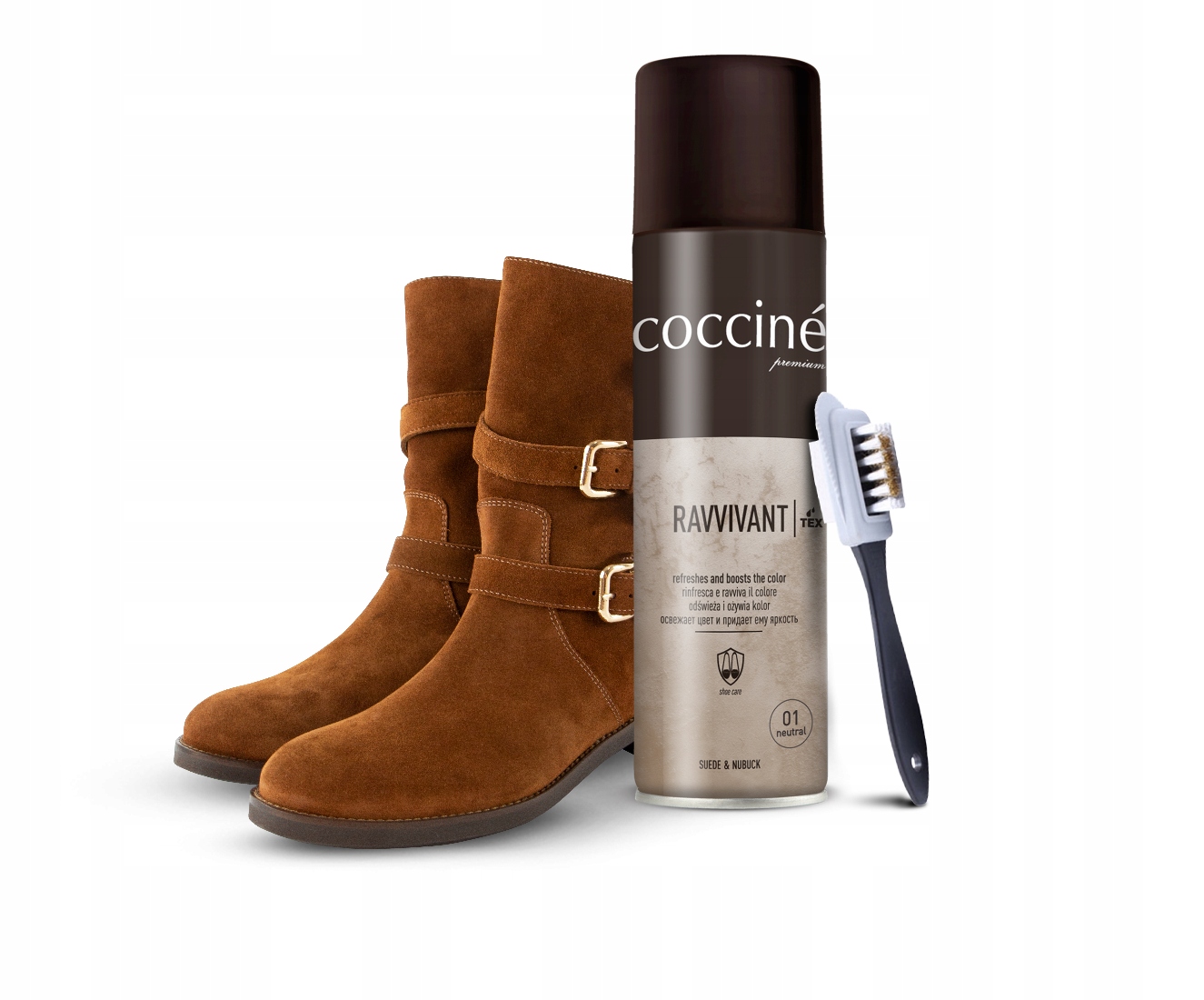 Препарат для ухода за замшей и нубуком, в том числе обувью с мембраной - TEX, освежающий и выравнивающий цвет. Восстанавливает естественный, яркий цвет и первоначальный, «пушистый» эффект нубука и замши.