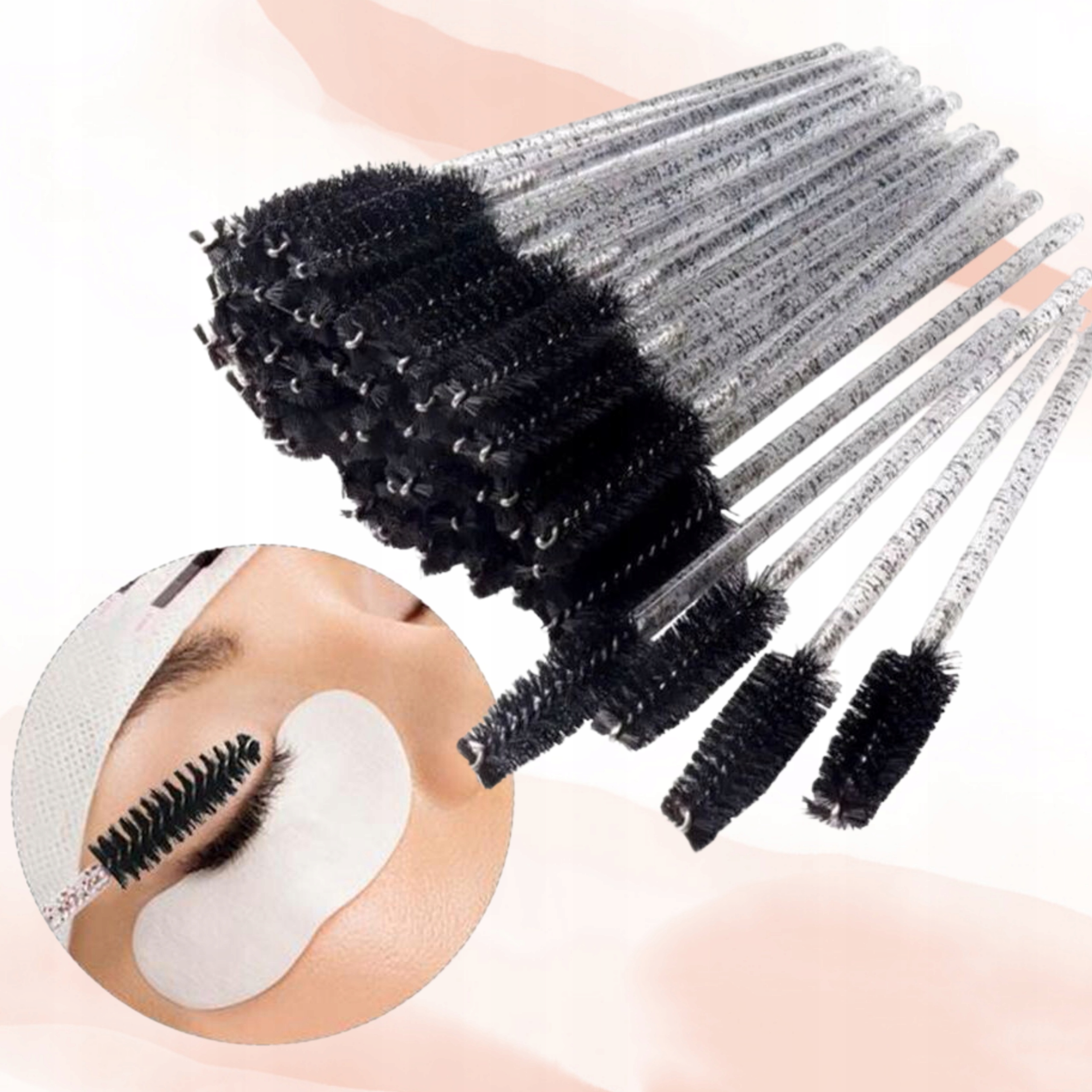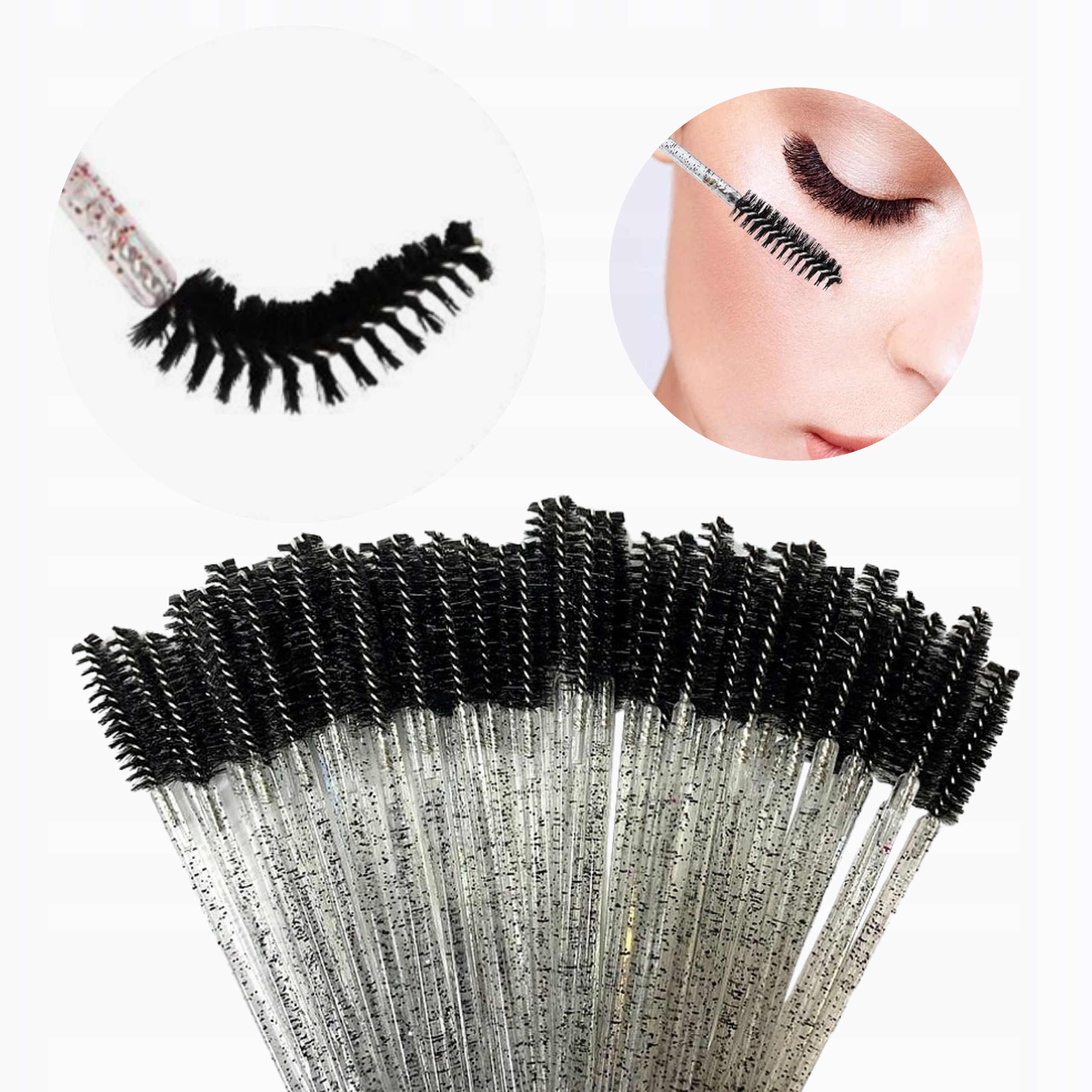 КИСТИ ДЛЯ БРОВЕЙ 50 ШТ. СЕРЕБРЯНЫЕ БЛЕСКИ ОДНОРАЗОВЫЕ СПИРАЛЬ