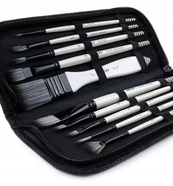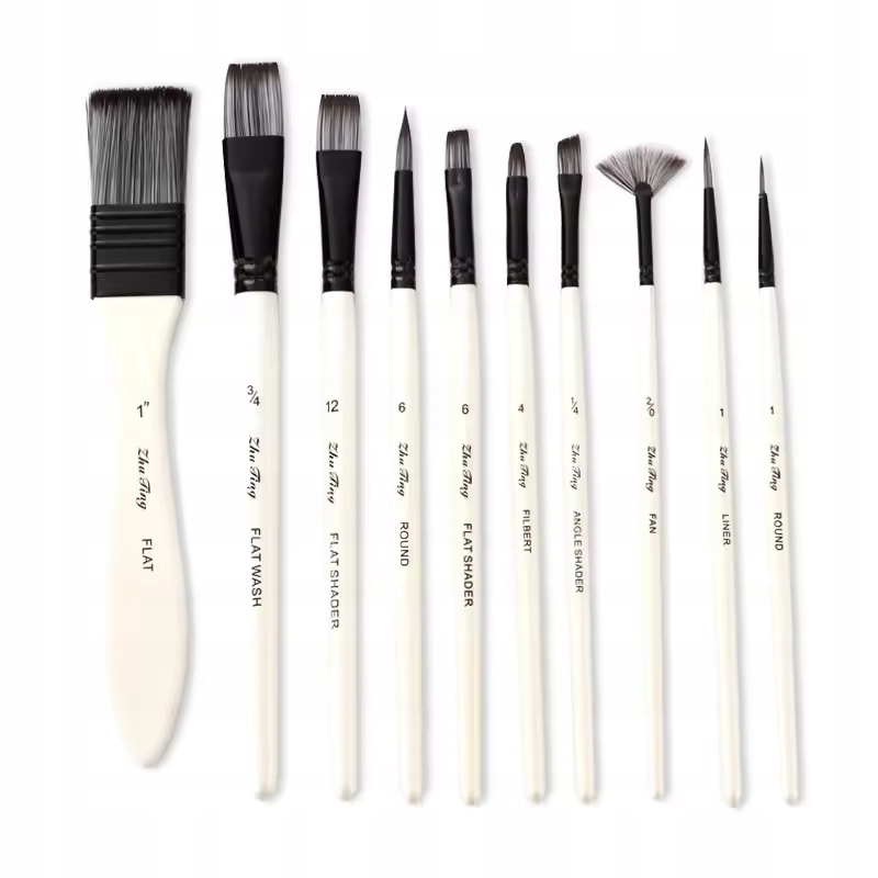 Набор из 10 кистей для рисования из синтетической щетины упакованв элегантный футляр на молнии. > Кисти имеют разную форму и толщину щетины, поэтому вы можете выбрать ту, которая идеально соответствует вашим потребностям и предпочтениям.