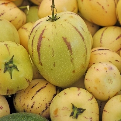 Многолетнее растение, в нашем климате выращиваемое как однолетнее. Его тонкие, часто прямостоячие побеги украшены нежно пахнущими цветками и декоративными съедобными плодами. Ягоды массой 100-300 г имеют яйцевидную или сердцевидную форму, кремово-желтого цвета с фиолетовыми или красно-коричневыми прожилками. Они богаты йодом и витамином С. Мякоть спелых плодов мягкая, сочная и ароматная, напоминает вкус дыни или манго. После очистки фрукты прекрасно подходят ко всем видам блюд: от десертов до основных блюд. Их можно замораживать, сушить, засахаривать и делать желе. Спелые плоды хранятся при комнатной температуре 3-4 месяца. Семена высевают в марте под покровы, на поддоны или в горшки. При температуре 18-24°С всходы наступают через 2-3 недели. Высадите растения на постоянное место во второй половине мая. Лучше всего выращивать его аналогично высокорослым томатам, выращивая растение на коле с 2-3 побегами и удаляя боковые побеги. Выращивают на солнечных, защищенных от ветра или под укрытием местах, на плодородной, не слишком сухой почве. Также рекомендуется для выращивания в подвесных контейнерах и балконных ящиках.
