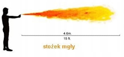 Перцовый баллончик емкостью 355 мл распыляется в виде конуса тумана, способствуя массовому распылению раздражающего вещества.