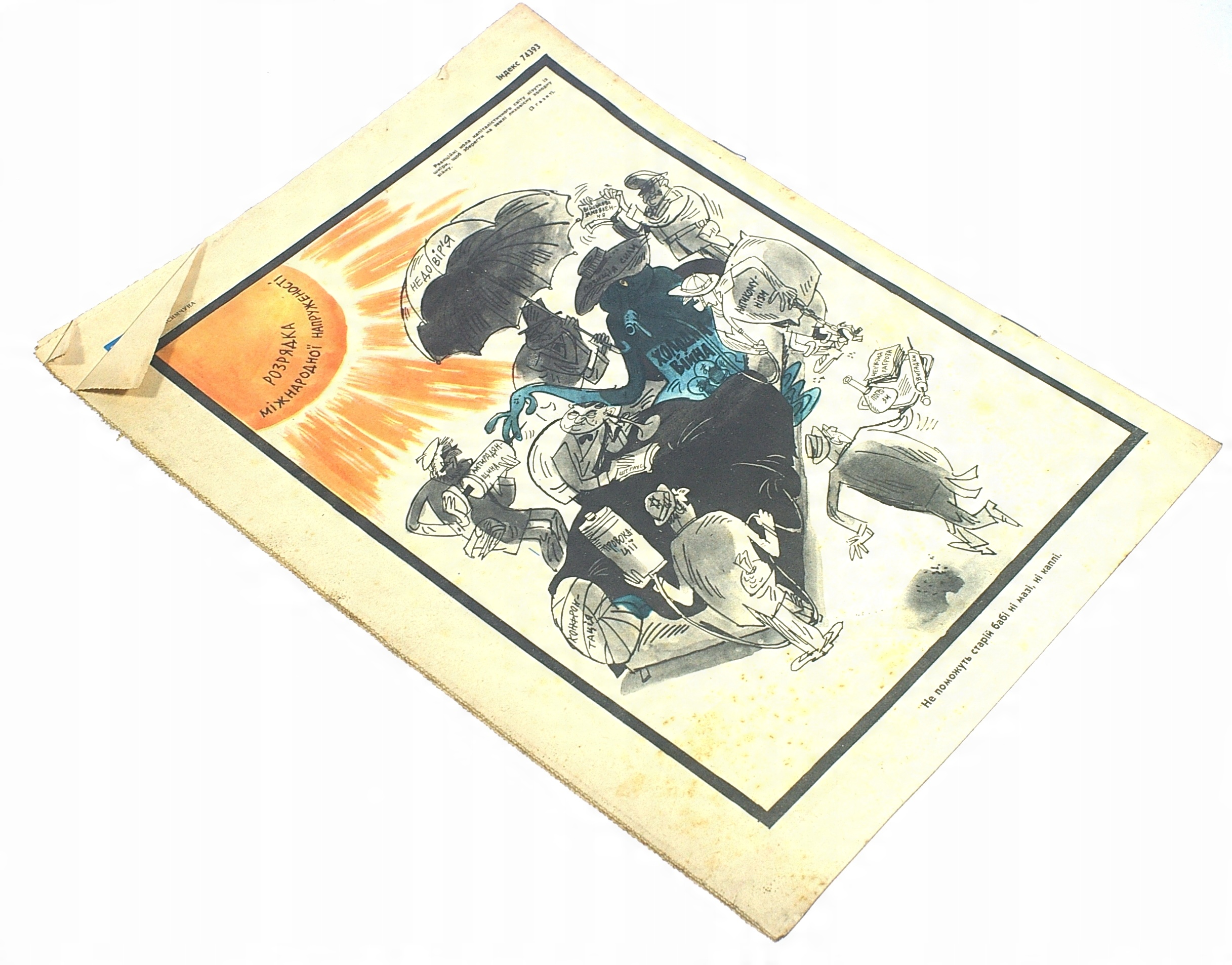Она была направлена против стран Запада, с помощью резких линий и прекрасных рисунков ведущих советских иллюстраторов показывала упадок, нищету и лицемерие капиталистических стран. Конкретными целями атак были США, Израиль, Германия и Великобритания, а частыми героями иллюстраций были Гитлер, Черчилль, Эйзенхауэр, дядя Сэм, различные президенты и лидеры капиталистических стран. Пропаганда разработала и увековечила в советском сознании образ западного человека как толстяка, чаще всего в цилиндре (или в униформе и черных очках), бизнесмена, напичканного долларами, жулика, торговца оружием, обогащающегося за счет бедных, мошенник, обычно изображается в сопровождении бомб, предназначенных для сброса на Советский Союз, вступающий в сговор с Гитлером или Израилем.