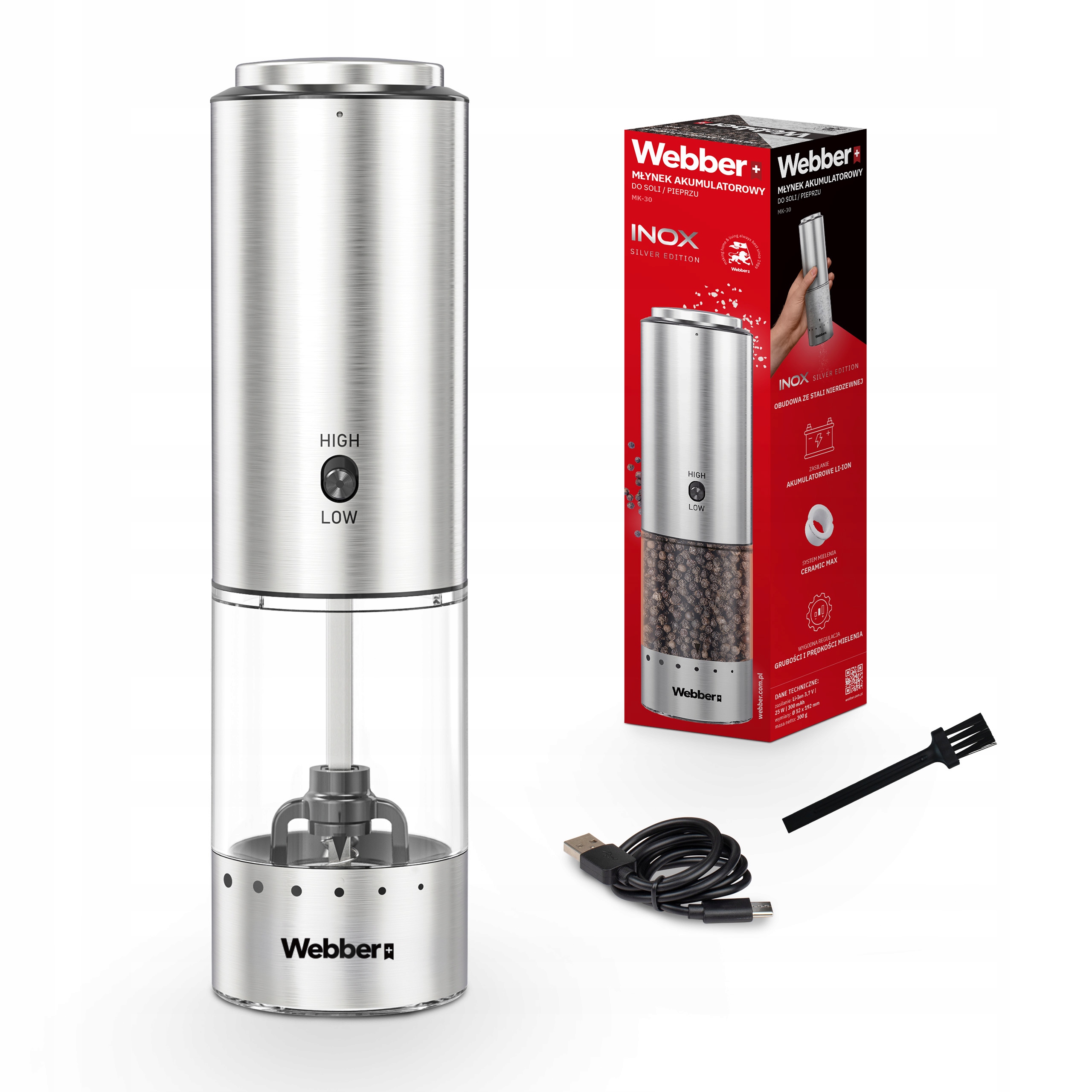 - светодиодное освещение - автоматически включается при работе, что позволяет вам точно выделять специи даже при низком свете. Żarnna - долговечный и коррозионный устойчивый, обеспечить точное шлифование в течение длительного времени.