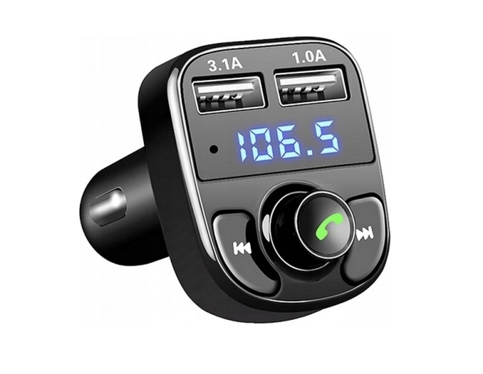 Передатчик, адаптер - это многофункциональный продукт, который будет полезен в более старых моделях автомобиля, не подлегающих с современными музыкальными игроками с USB -входами. Устройство имеет профессиональный модуль Bluetooth, два входа USB и FM. Он имеет возможность заряжать электронные устройства с использованием USB -портов (просто подключите кабель зарядки).
