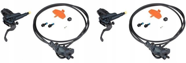 - В комплекте: 2 зажима с блоками, подключаемые к тросу длиной 1000 и 1700 мм, 2 рукоятки со вставленным в нее стволом, 2 оливы, 2 двух винта для крепления зажима, 2 красных проставки для блокировки тормоз, если в суппорте нет тормозного диска.