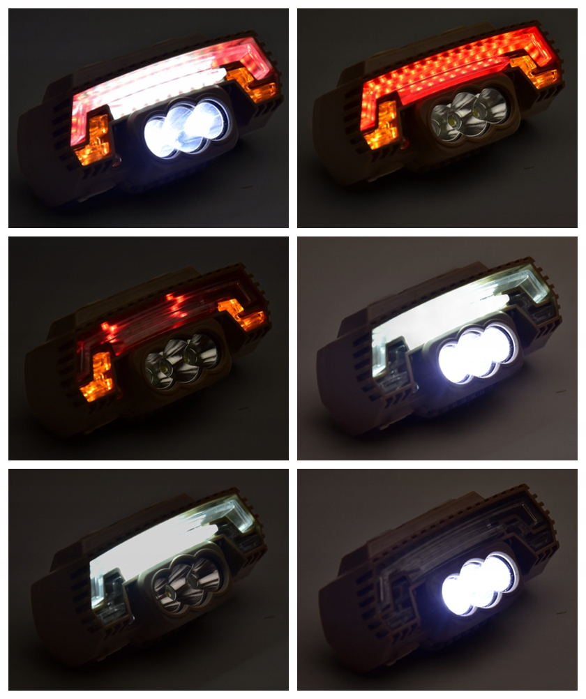 - В верхней части фонарика есть два левых и правых переключателя благодаря этим кнопкам: используйте красочное мороженое, необходимо для использования левой кнопки, если белый свет, правая кнопка также может быть смешана друг с другом, и когда мы держим 3 секунды, один из переключателей включит функции датчика движения