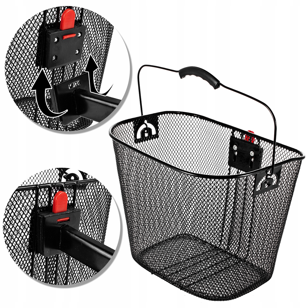 Передняя металлическая велосипедная корзина с механизмом CLICK, которую вы легко можете взять с собой на покупки или на пикник с семьей.