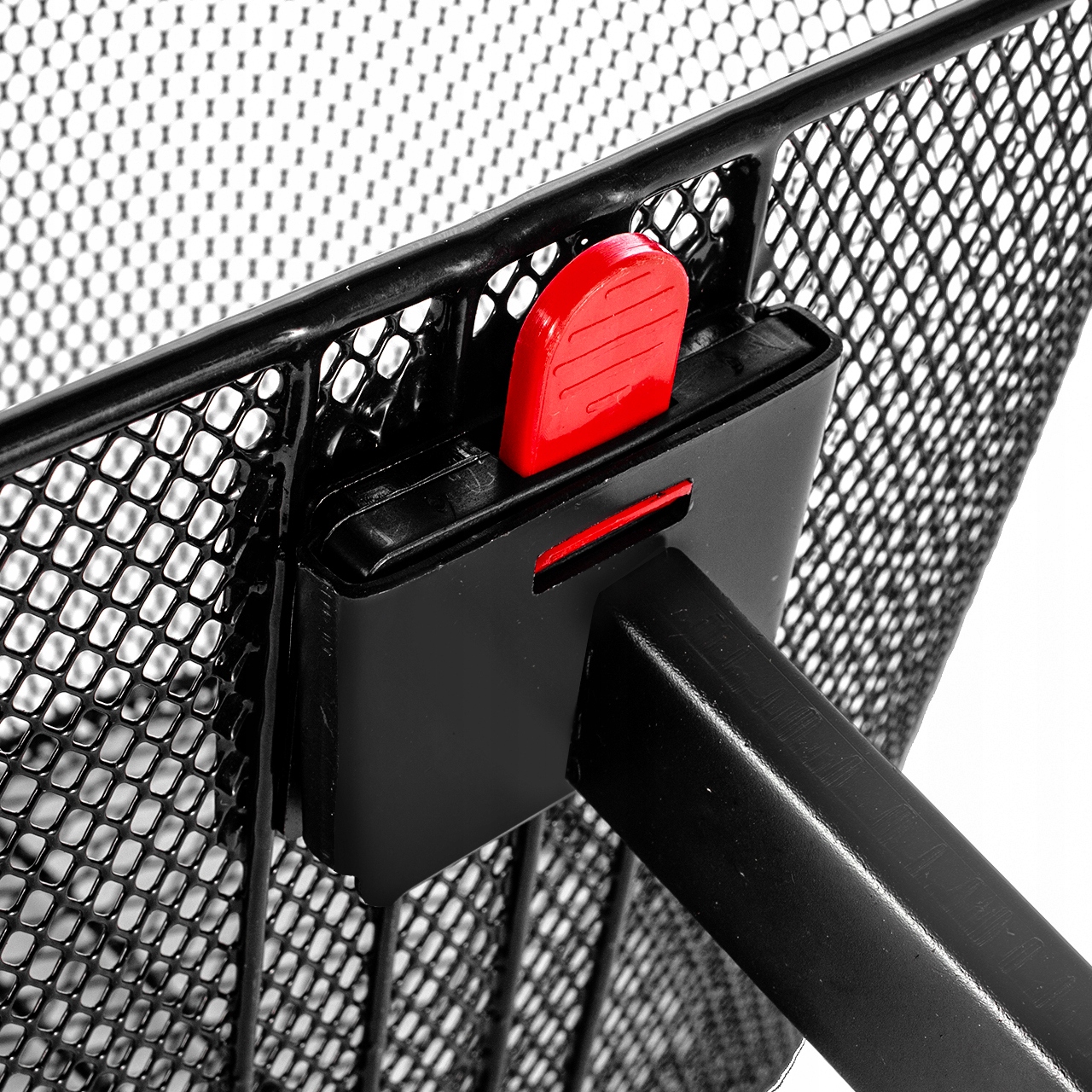 Ручка крепится к стойку руля, к которой можно прикрепить или отсоединить корзину с помощью красной кнопки.