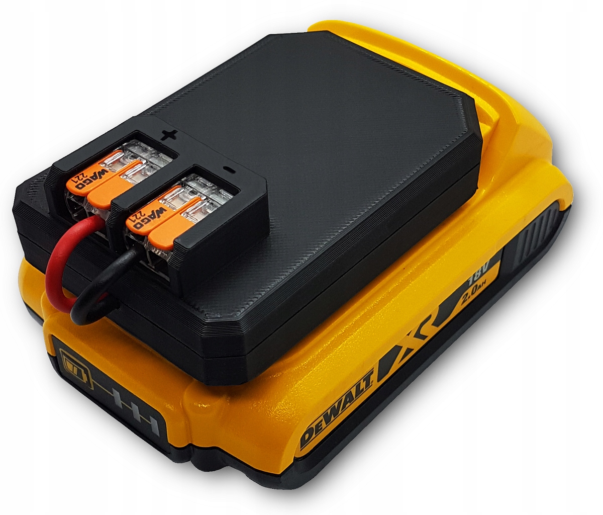 Адаптер позволяет подключать через аккумуляторный адаптер Dewalt различные устройства с напряжением 18 В, например, светодиодные лампы. Быстроразъемные разъемы WAGO — очень удобное решение, вам больше не придется паять провода для подключения устройств. Адаптер хорошо сидит и имеет «щелчок», не позволяющий ему выскользнуть из устройства. Кроме того, устройство изготовлено из высококачественного материала, что обеспечивает очень хорошую устойчивость к падениям.
