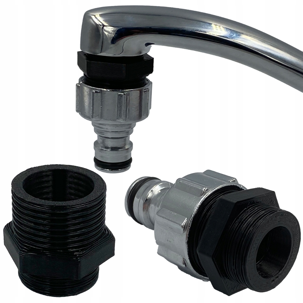 Адаптер имеет две резьбы: G1, предназначенную для крепления к крану, и другую G3/4, к которой можно подсоединить шланг. Редукция обеспечивает безопасное и стабильное соединение переходника со шлангом, поэтому риск протечки воды отсутствует.