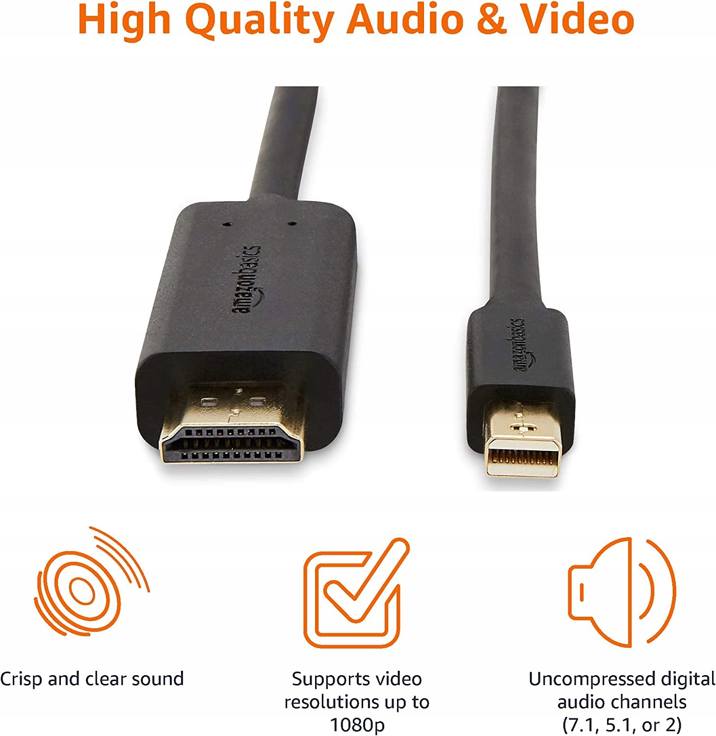 - Кабель Mini-DisplayPort-HDMI передает аудио- и видеосигналы с вашего компьютера/планшета на экран HD.