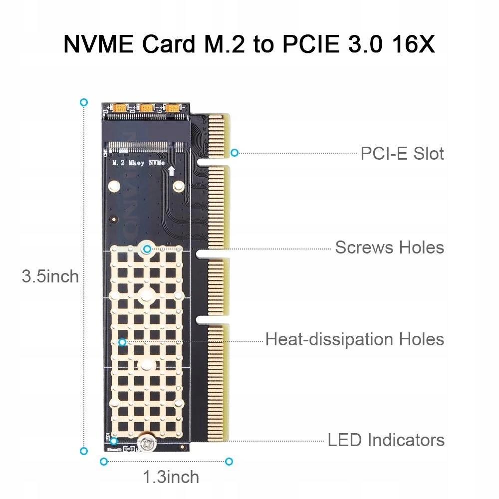 Адаптер SSD-PCI Express от ONVIAN — профессиональное решение, обеспечивающее эффективную интеграцию SSD-накопителей с интерфейсом PCIe M.2 с материнскими платами, совместимыми с разъемом M-Key. Исключительно большая площадь радиатора эффективно рассеивает избыточное тепло, повышая эффективность и стабильность привода. Светодиодный индикатор указывает на то, что модуль включен, что позволяет легко проверить его состояние. Адаптер поддерживает различные типы твердотельных накопителей, включая 30x22 мм, 42x22 мм, 60x22 мм и 80x22 мм, что обеспечивает универсальное использование. Кроме того, он предлагает поддержку различных типов слотов PCI-E, включая 4X, 8X и 16X, что обеспечивает гибкую интеграцию с различными конфигурациями компьютеров.