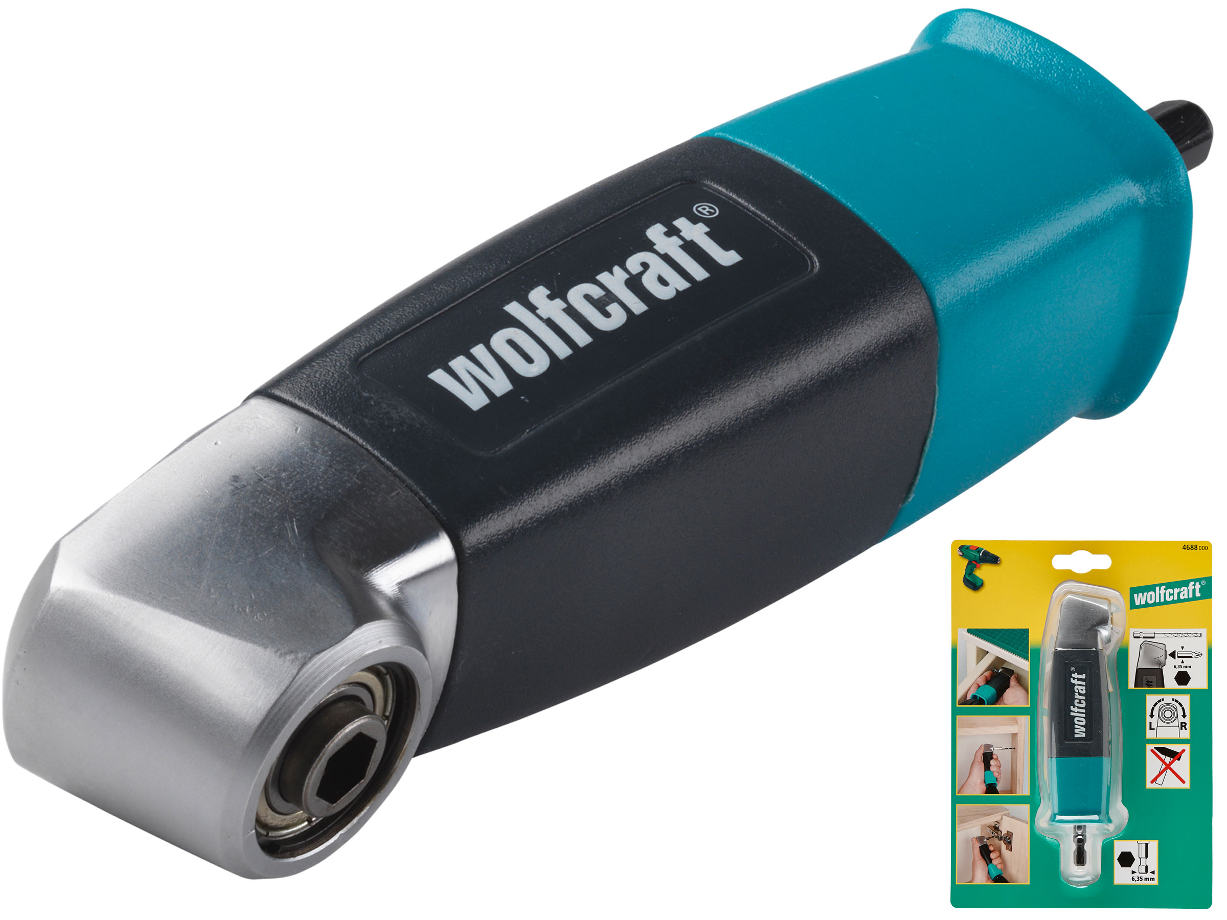 Маленький переходник - угловая насадка от Wolcraft. Предназначен для вкручивания под углом 90° в труднодоступных местах.Простое и удобное решение для немедленного использования.