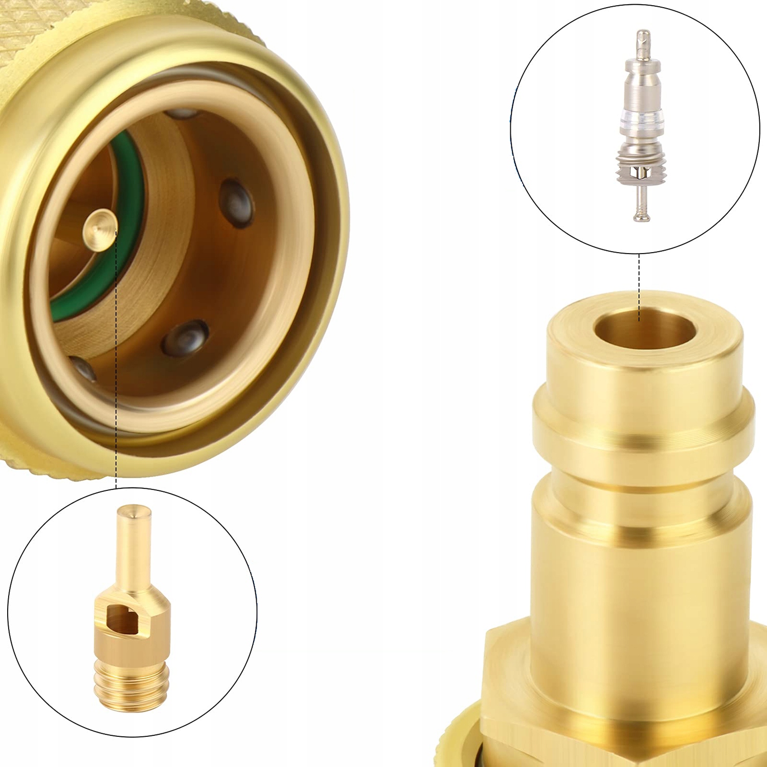 НАБОР АДАПТЕРОВ ДЛЯ МАНОМЕТРА переменного тока --- Поставляется с парой быстрых разъемов для вспомогательных и напорных соединений - штекерный разъем 1/4 дюйма, переходники с 134a на 1234yf, инструмент для удаления сердечника заменен на разъем.< /ли >