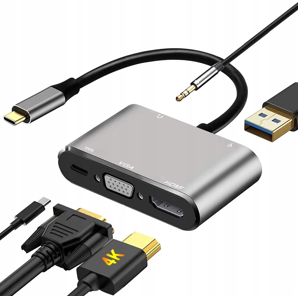 Адаптер позволяет подключать устройства с портом USB-C (3.0 или 3.1) к оборудованию, оснащенному HDMI или VGA
