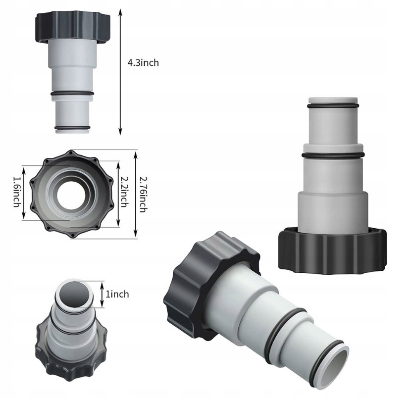 Благодаря специальным разъемам 1,5 и 1,25 дюйма наши адаптеры обеспечивают плавное соединение с гибкими трубами и стандартными элементами наборов для бассейнов Intex. Установка без проблем, протечек нет!