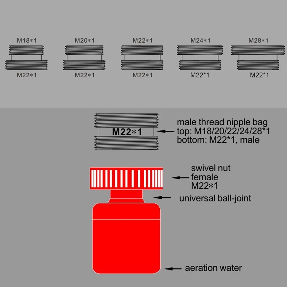 ⭕ В комплект поставки входит переходник для смесителя M18x1/M20/M22/M24/M28 для подключения к различным типам смесителей, доступных на рынке. рынок.